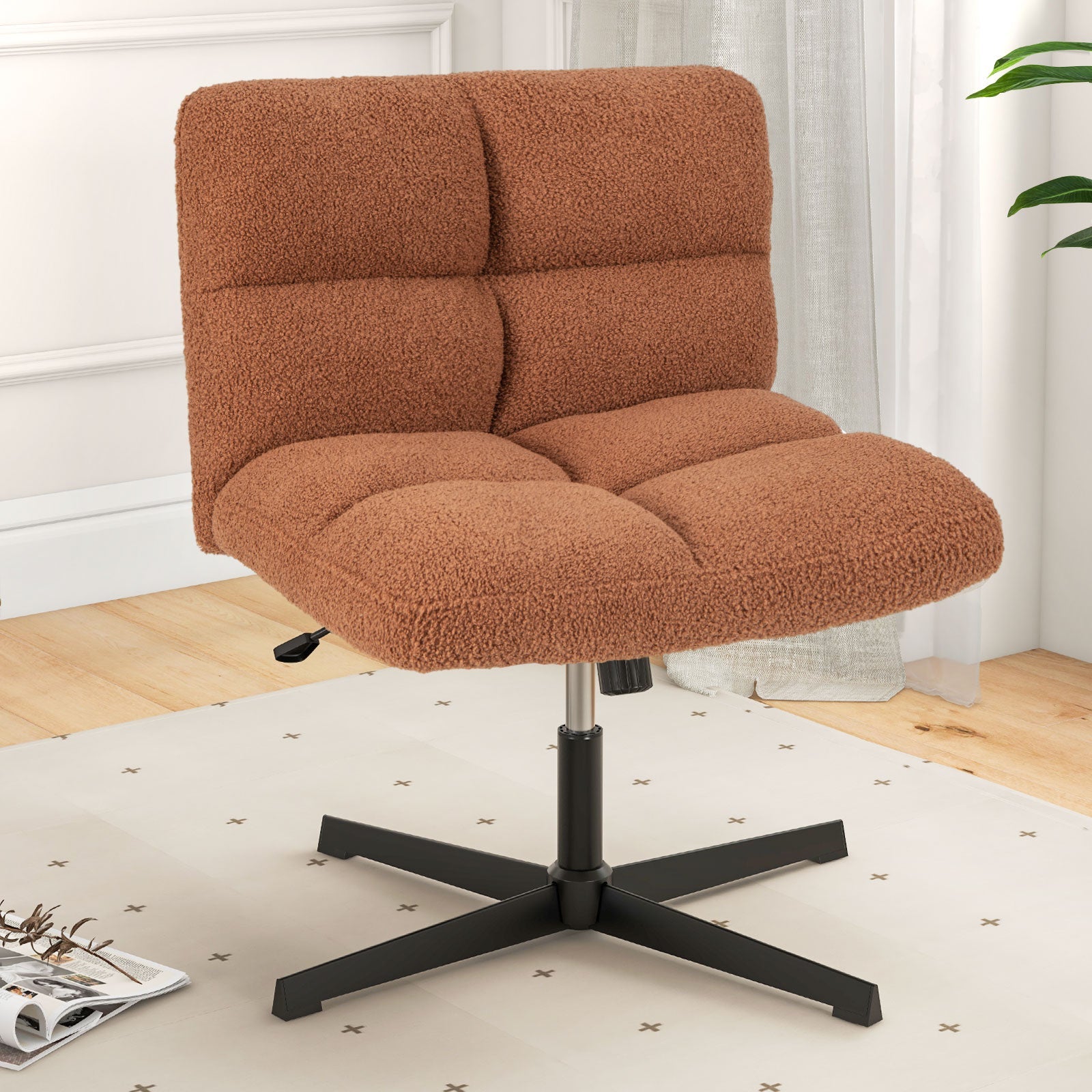 Office Armless Chair Cross Legged with Imitation Lamb Fleece and Adjustable Height-Brown