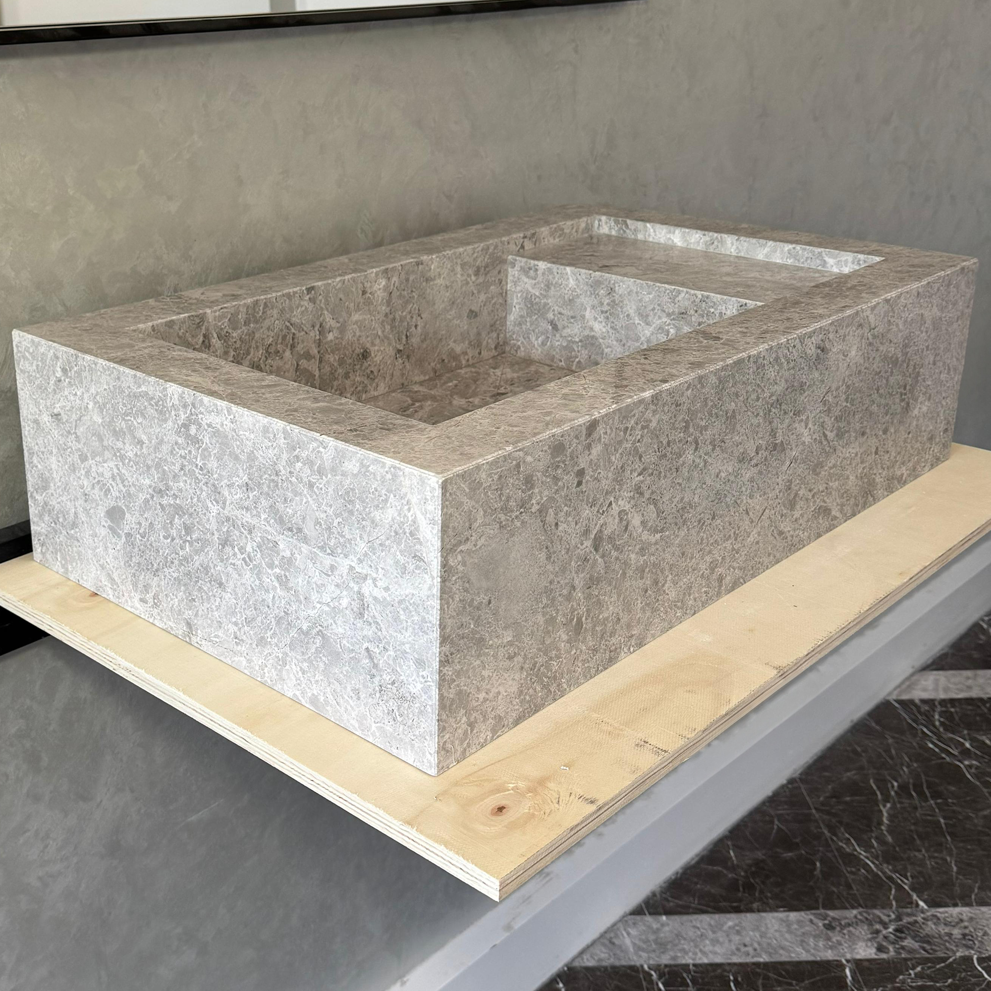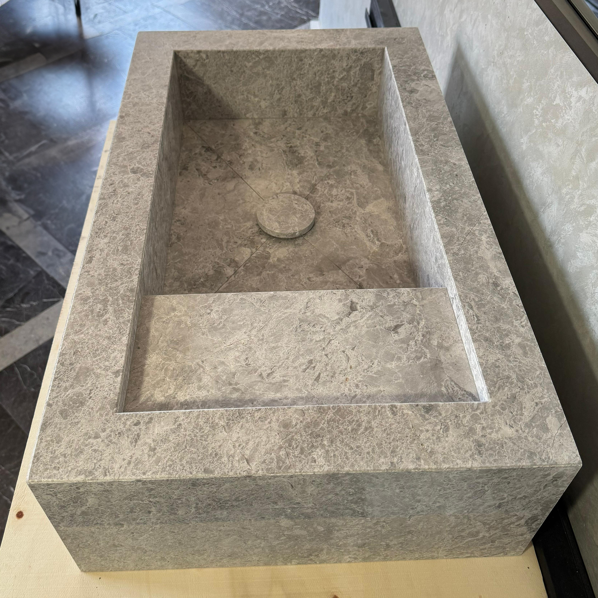 HANDCRAFTED CUSTOM TUNDRA GREY MARBLE SINK