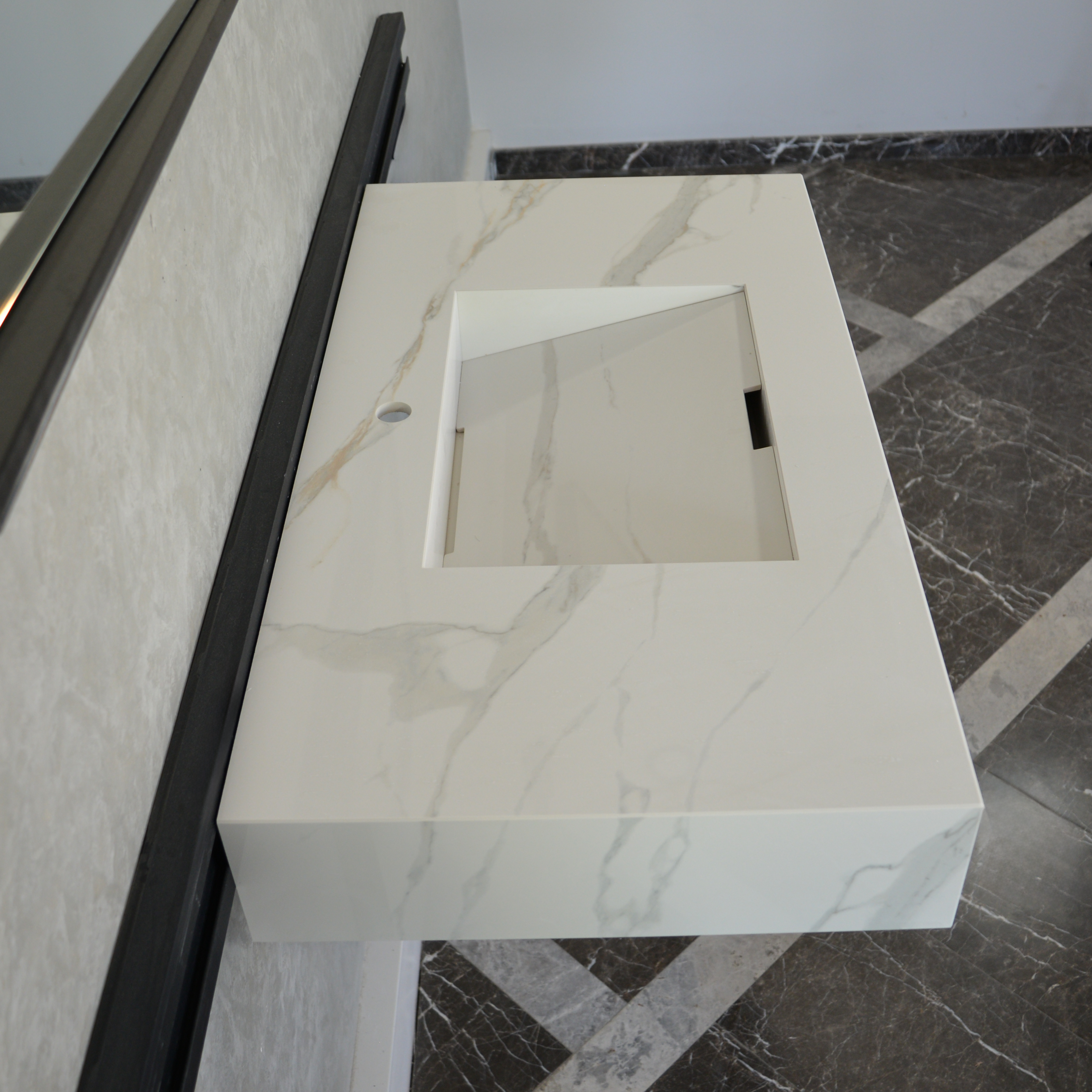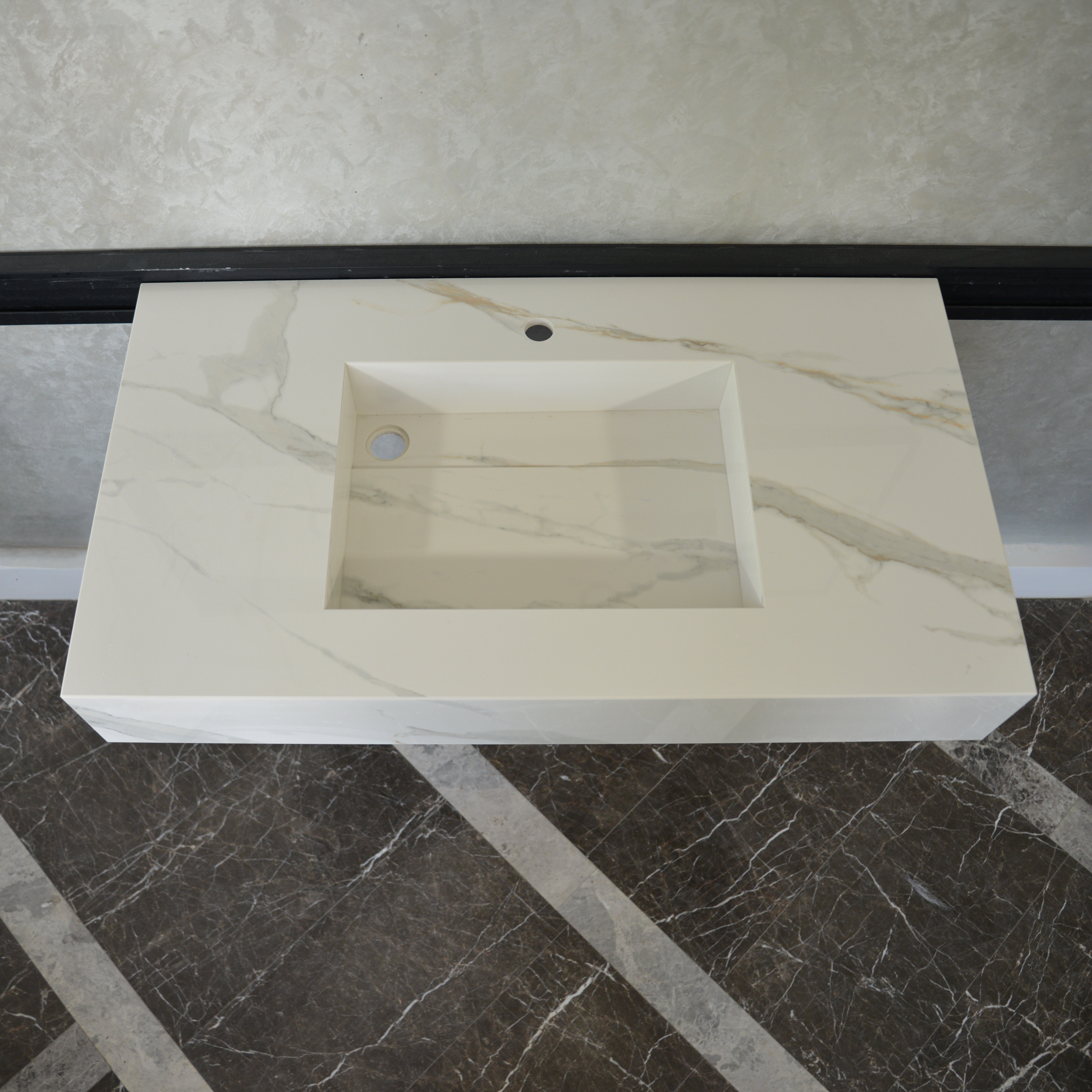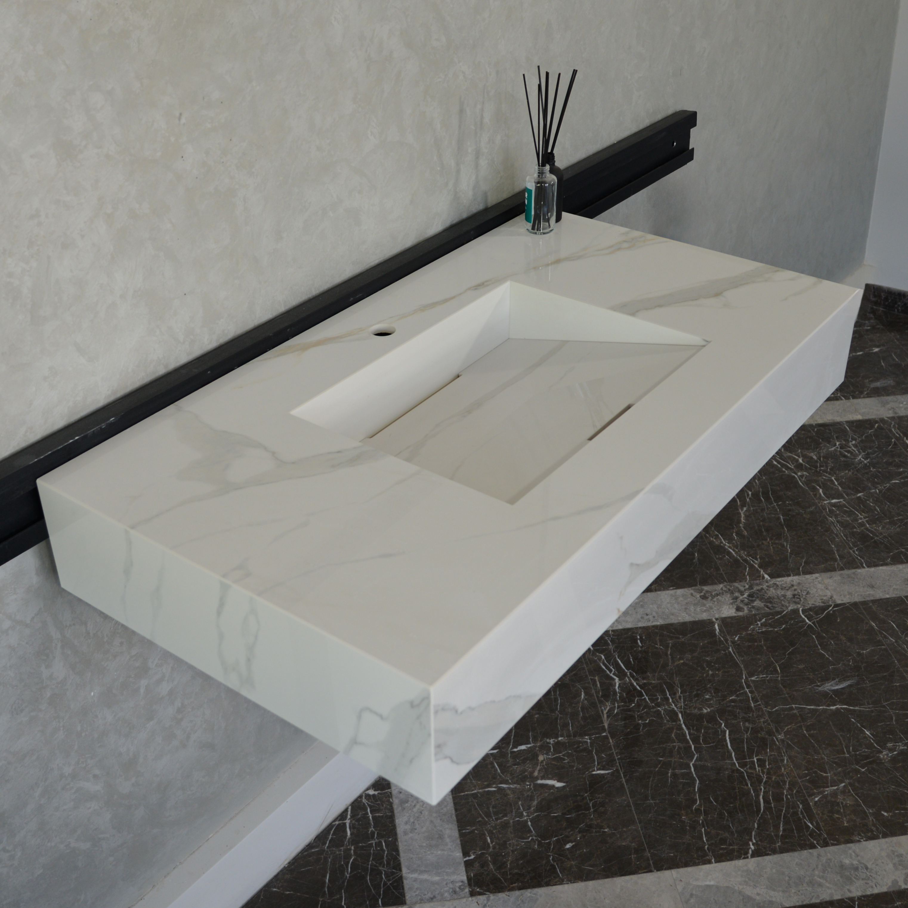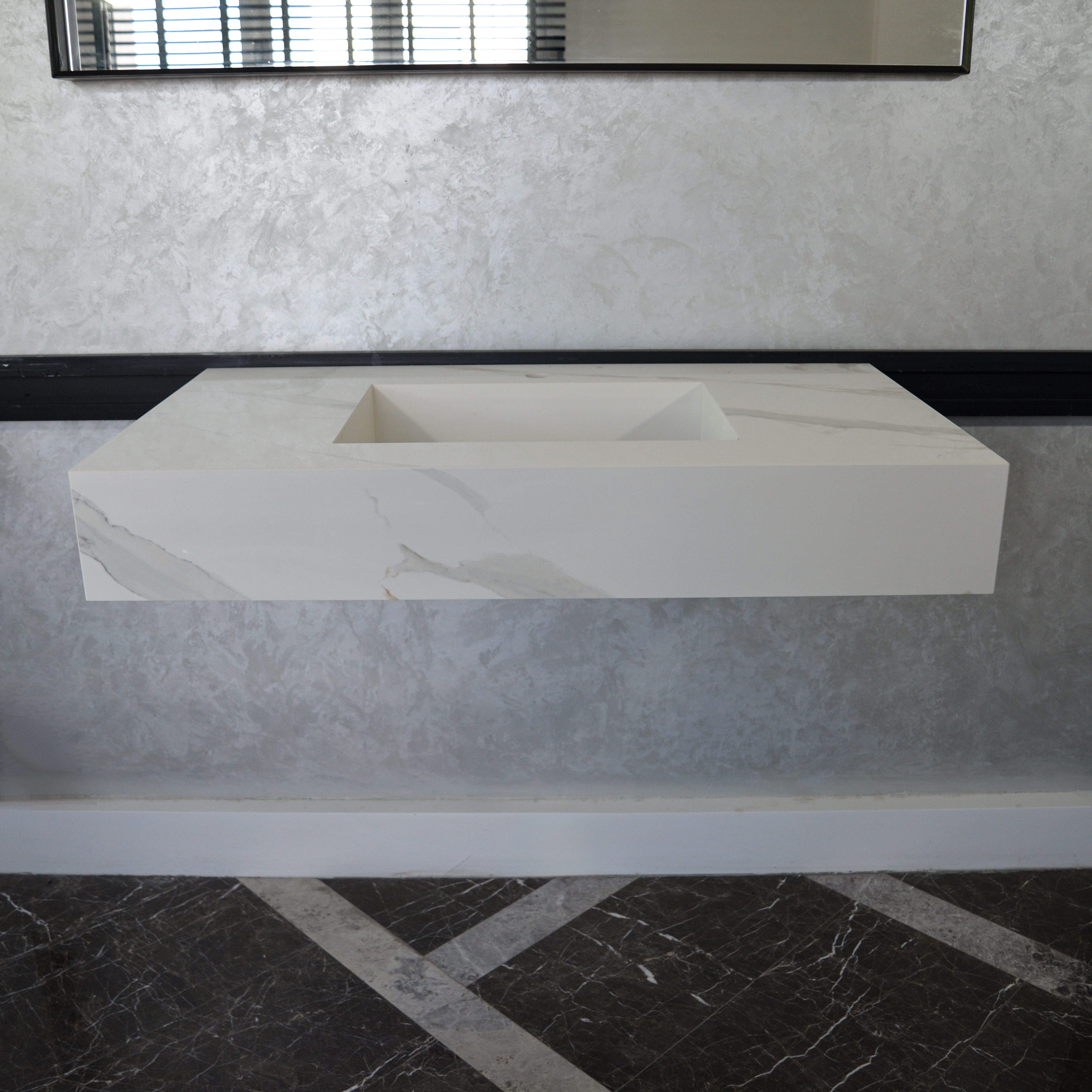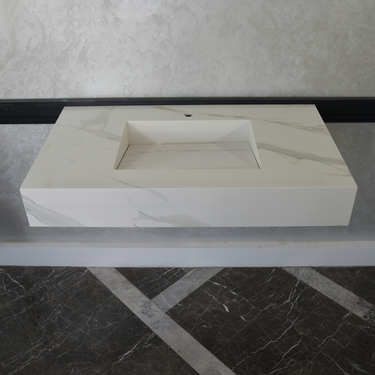 Calacatta Oro Custom Sink / Polished Finish White Porcelain Vanity