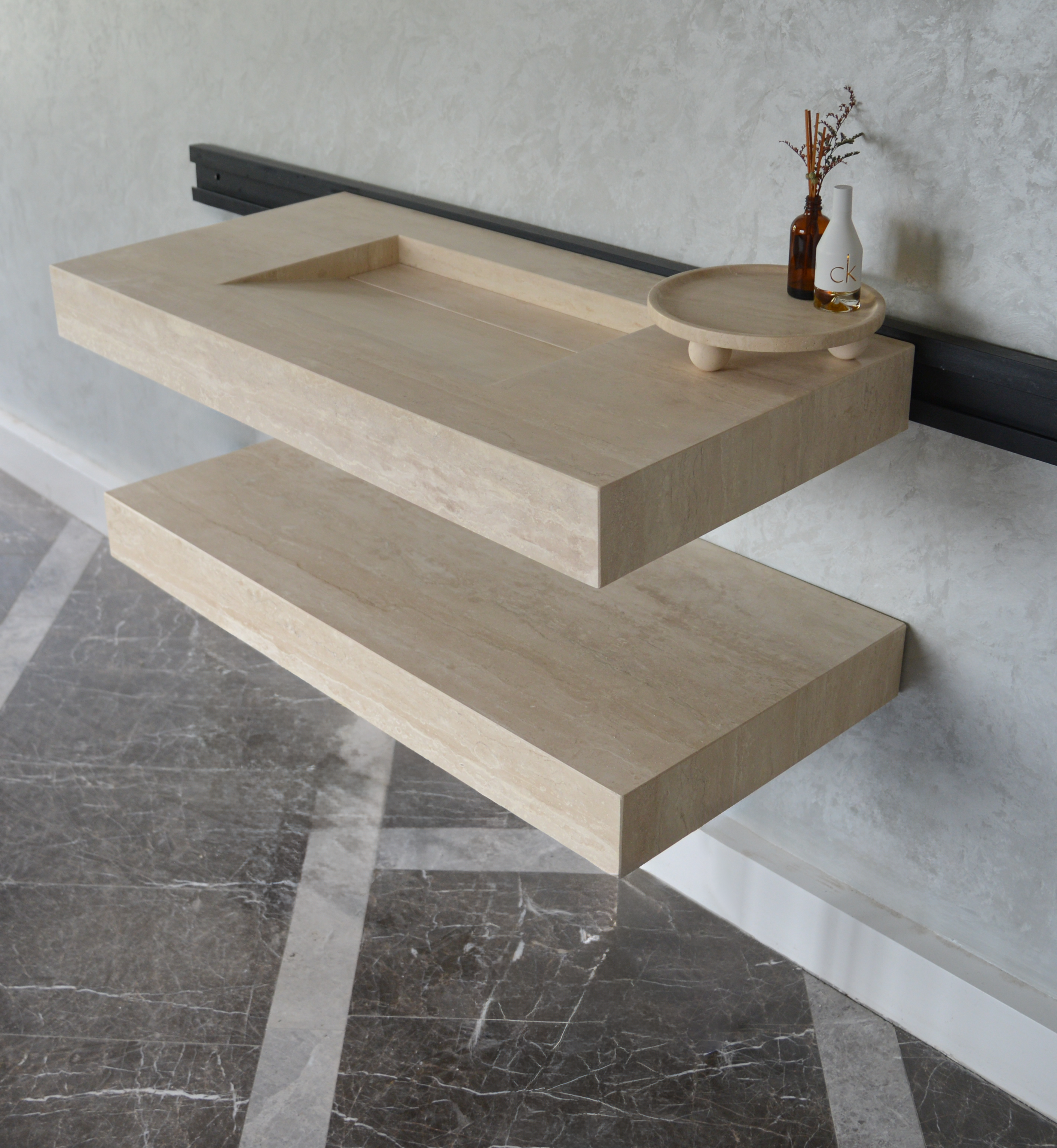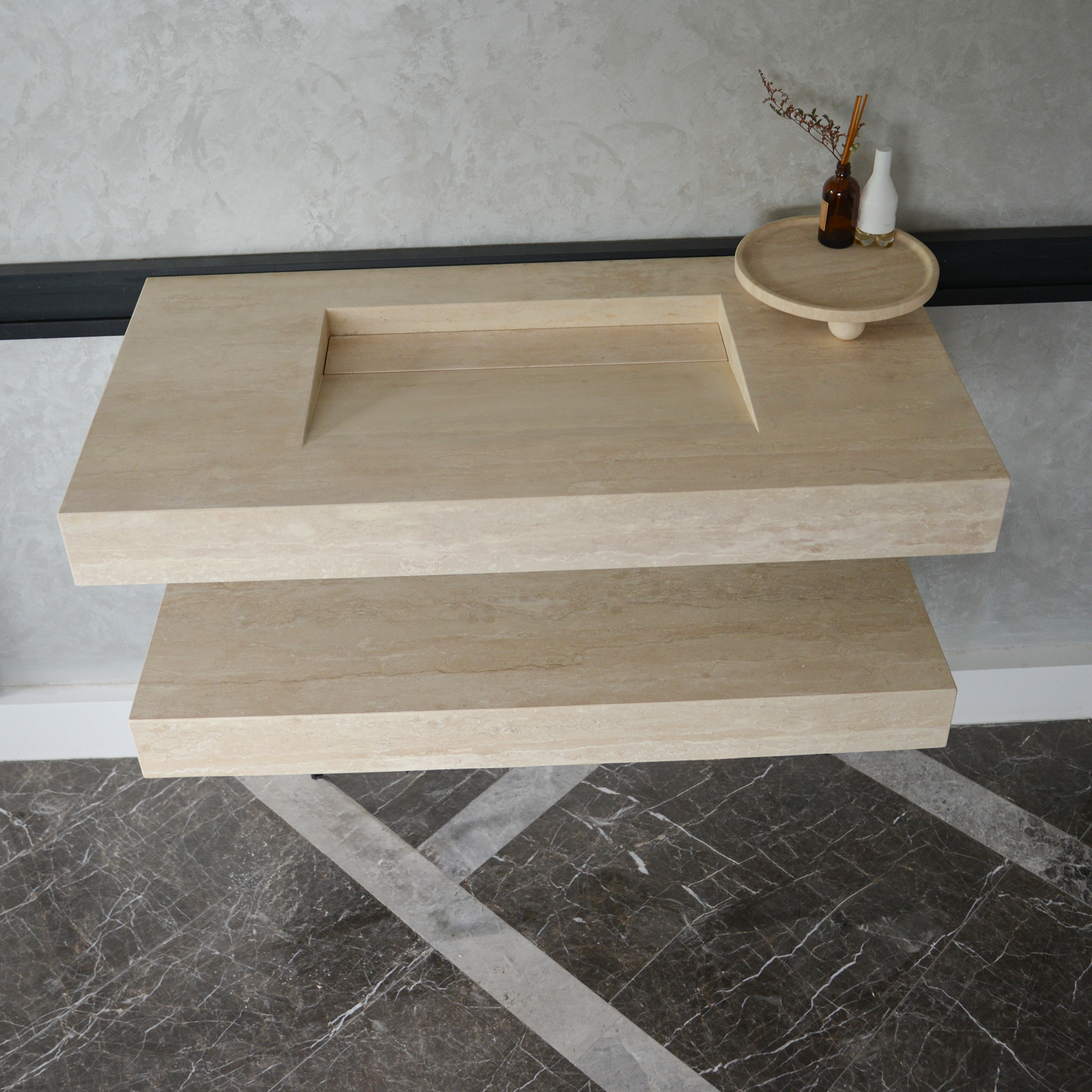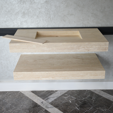 Custom Travertine Sink and Matching Shelf, Handmade Custom Beige Travertine Sink, Vein Cut Travertine Floating Sink, Sink For Bathroom, Marble Vessel Sink