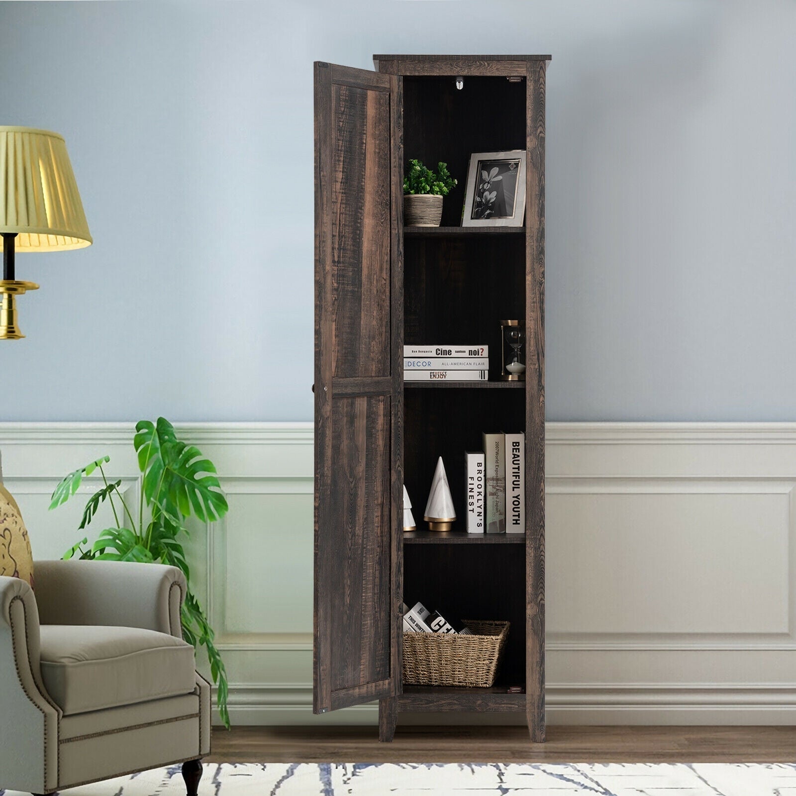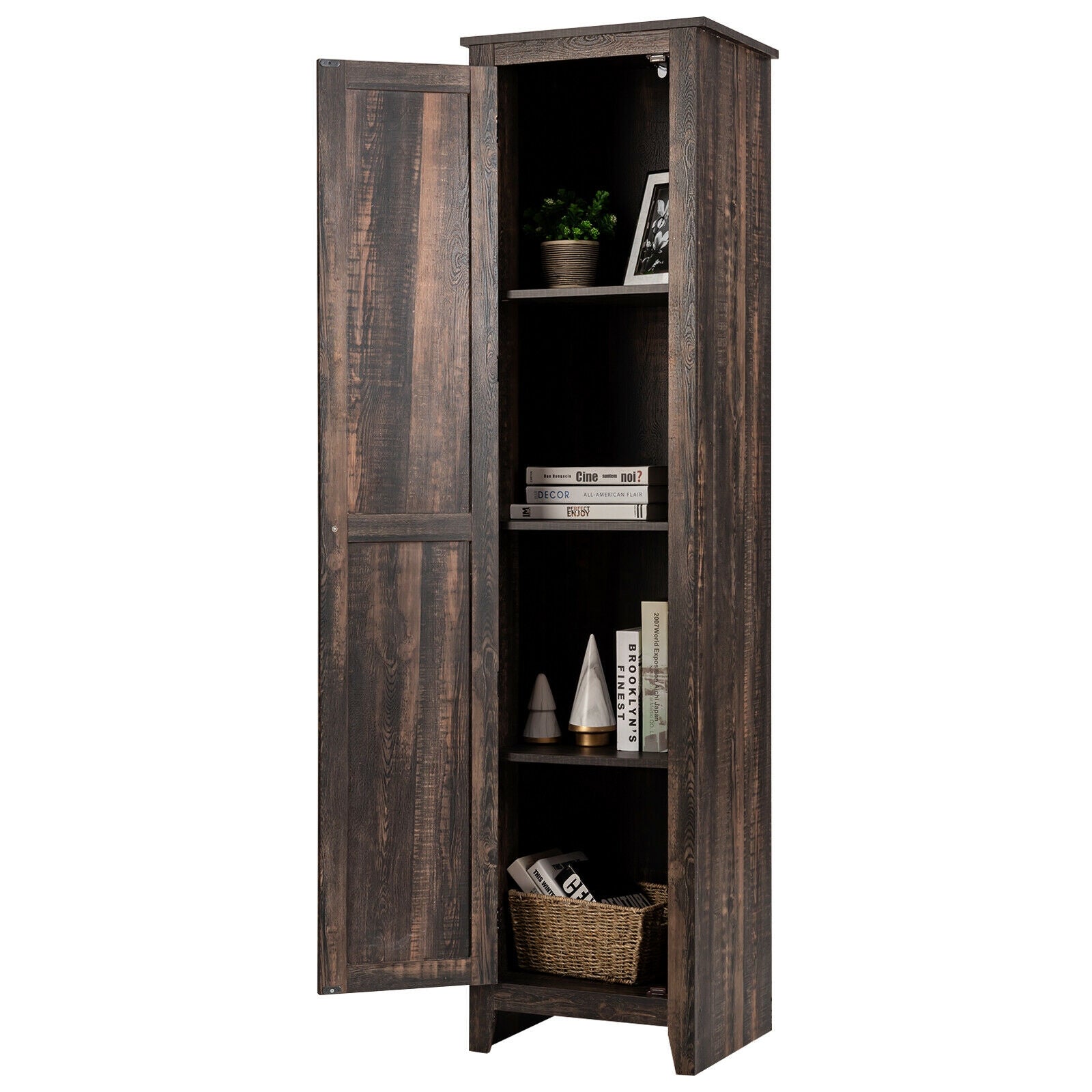 ● High-quality boards ensure durability and better load capacity● 4 shelves provide ample storage space● Anti-toppling device for adding stability● Raised feet prevent damp from the ground● Round knob for easily open and close the door● Magnetic button prevent the items from falling down● The modern and clean look matches well with home décor● Ideal for bathroom living room bedroom entryway etc● Easy to assemble with instructions