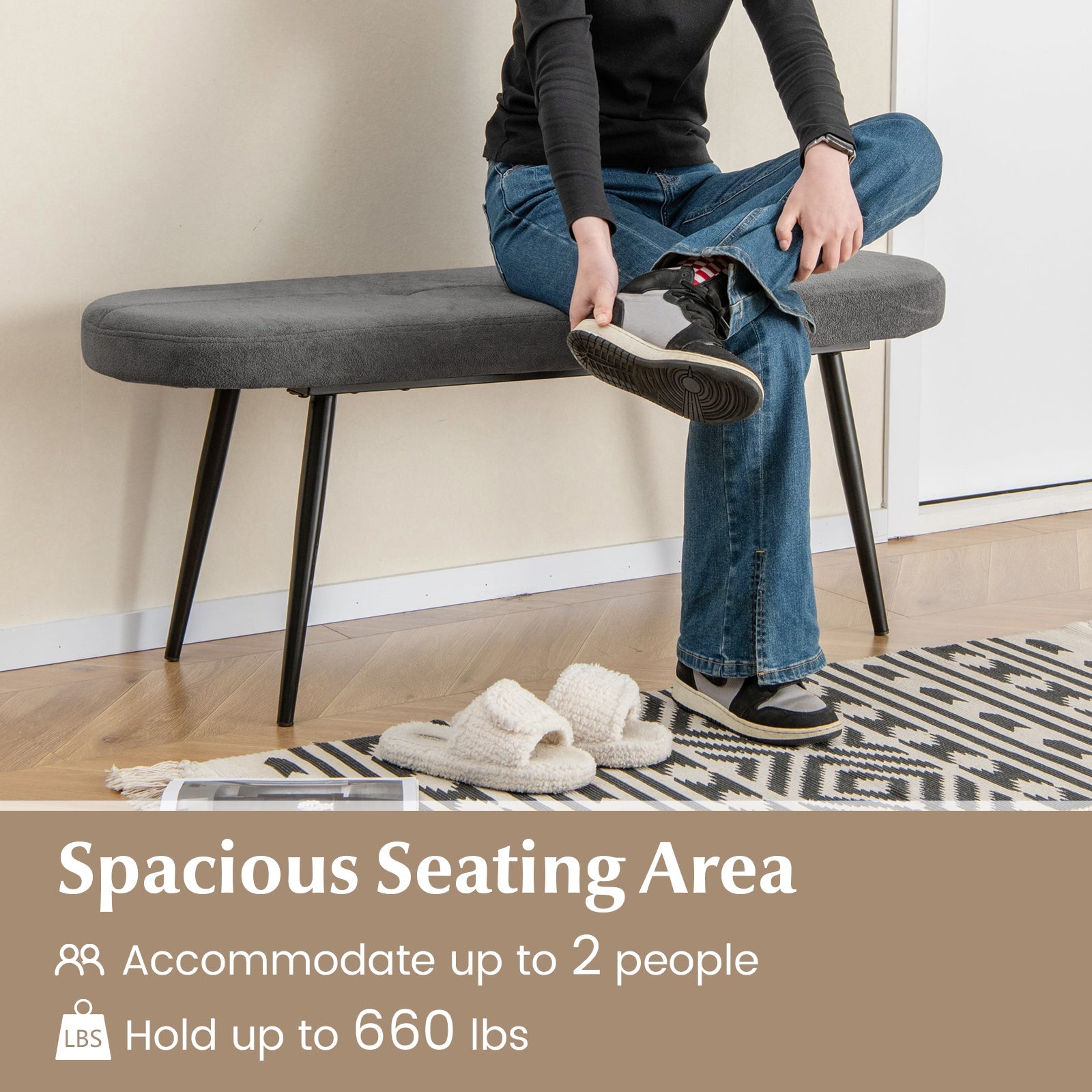 47 Inch Upholstered Entryway Bench with Heavy-duty Metal Frame-Gray