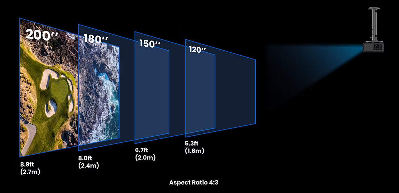 The AH500ST's laser light source delivers 4000 lumens of brightness and high contrast, ensuring vivid, detailed visuals even on a massive 200-inch screen.