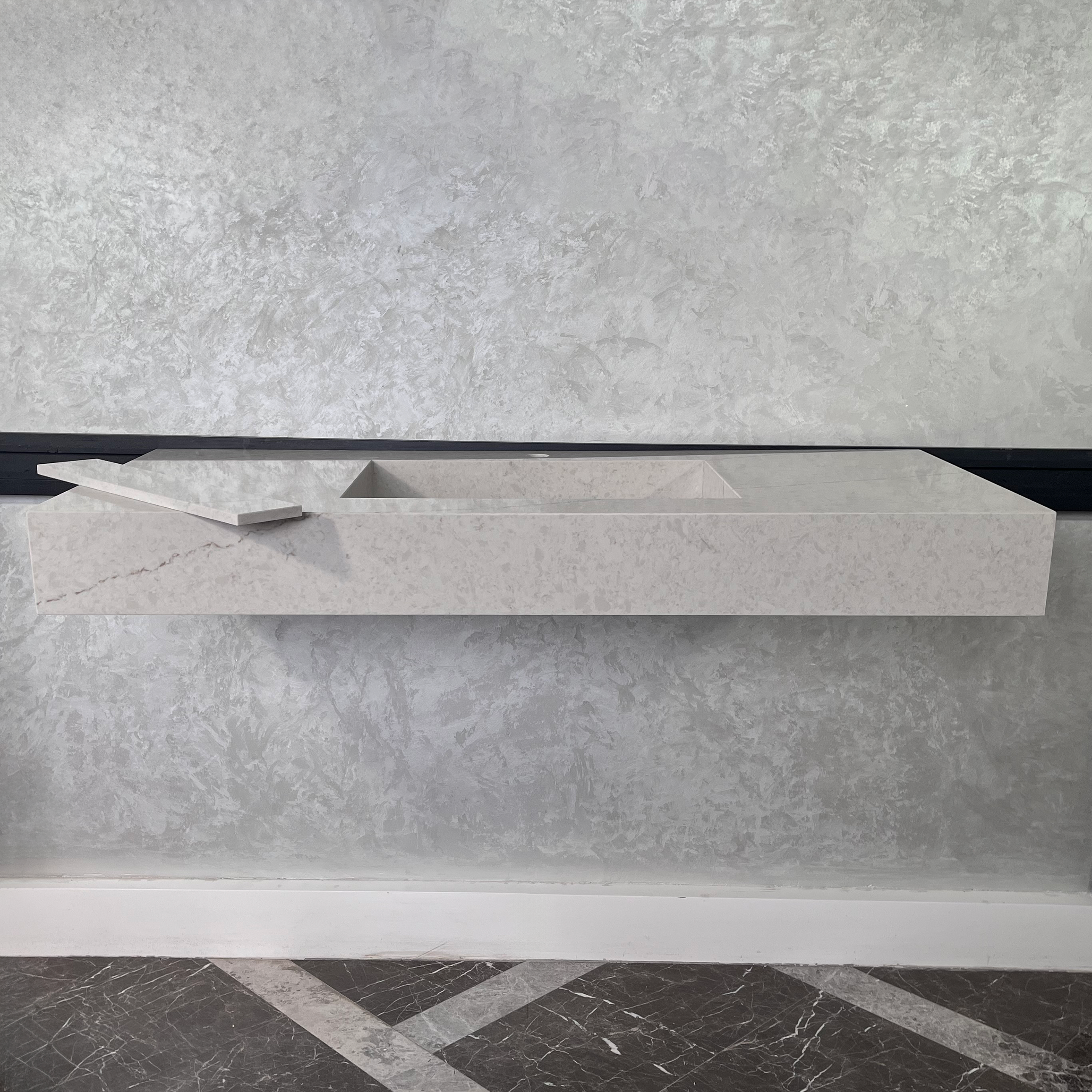 This durable and elegant quartz sink was cut and assembled by hand delicately. Thanks to latest innovations in technology, it is possible to create super durable and stylish slabs. It is a long lasting and very durable material.