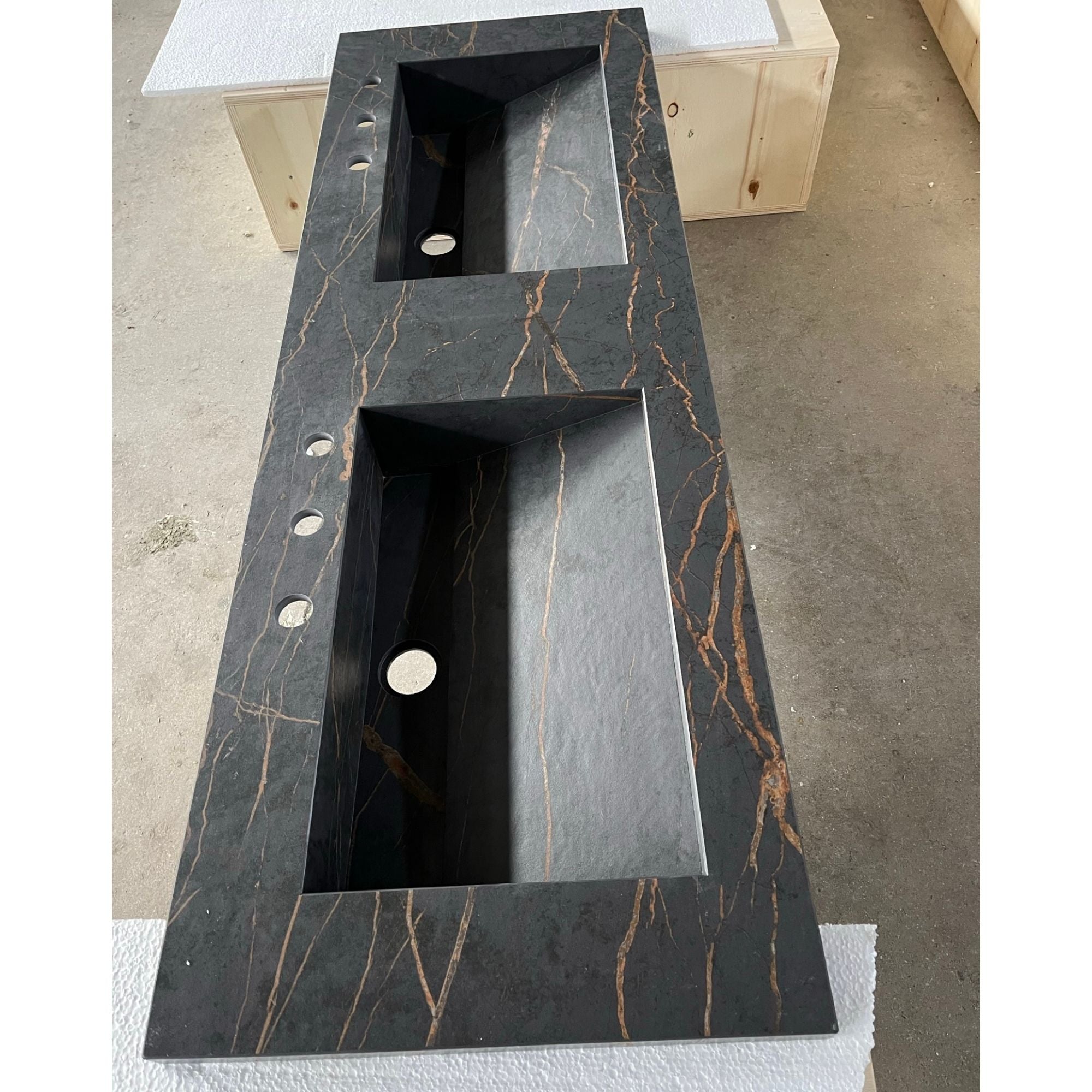 Double Sink Integrated Custom Dekton Laurent Porcelain Sink, Marble Look Kitchen Sink, Bathroom Sink, Bathroom Vanity, Handmade Porcelain Sink, Marble Look Sink