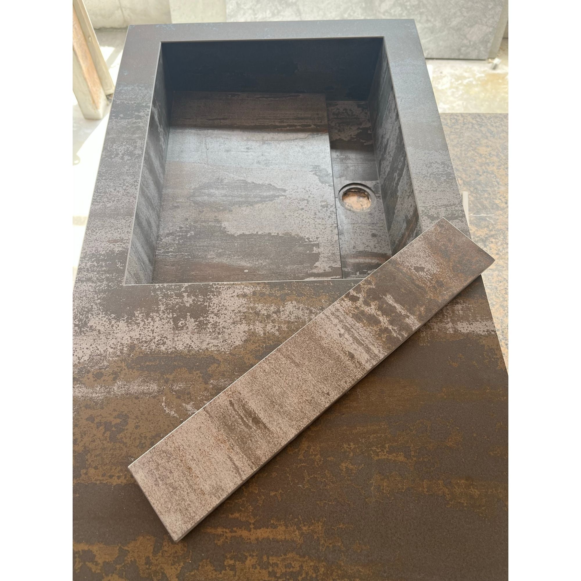 Metalic Look Matt Custom Sink / Matte Finish Dark Colour Vanity / Industrial Design Sink / Dekton Porcelain Sink