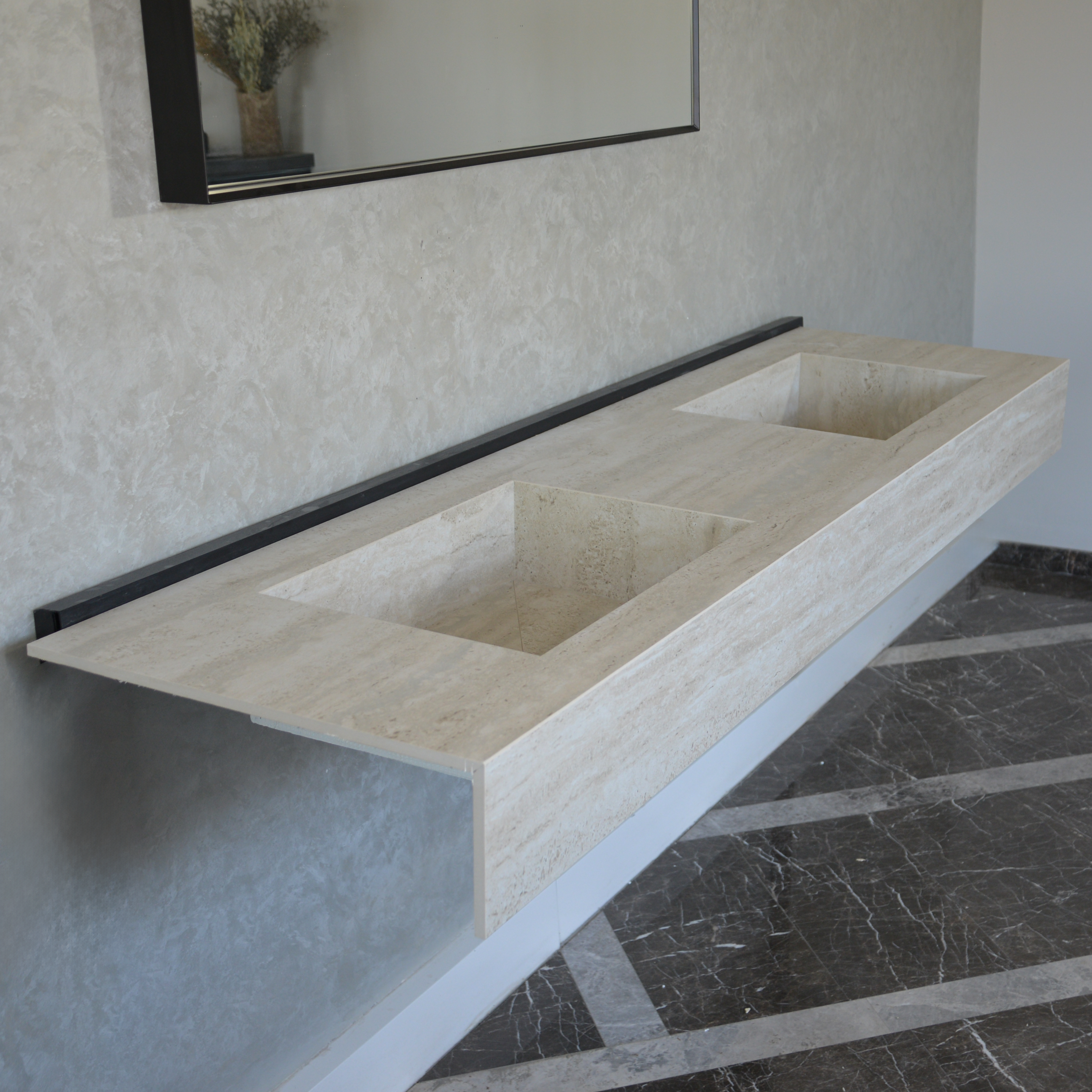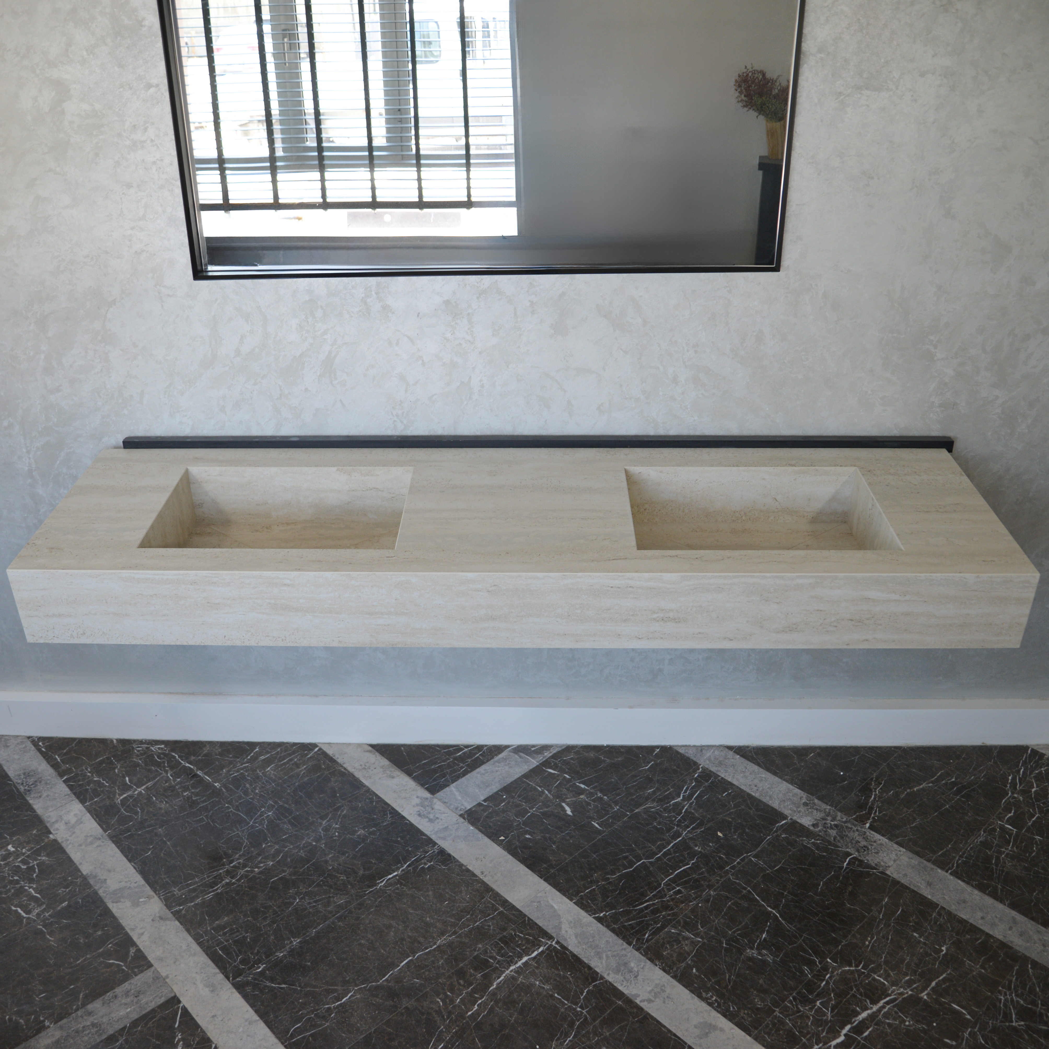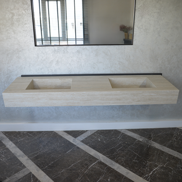 Custom Order Sink, Infinity – Travertino Chiaro Porcelain Double Sink, Marble Look Sink For Bathroom, Wall Mounted Marble Look Sink, Vanity Sink