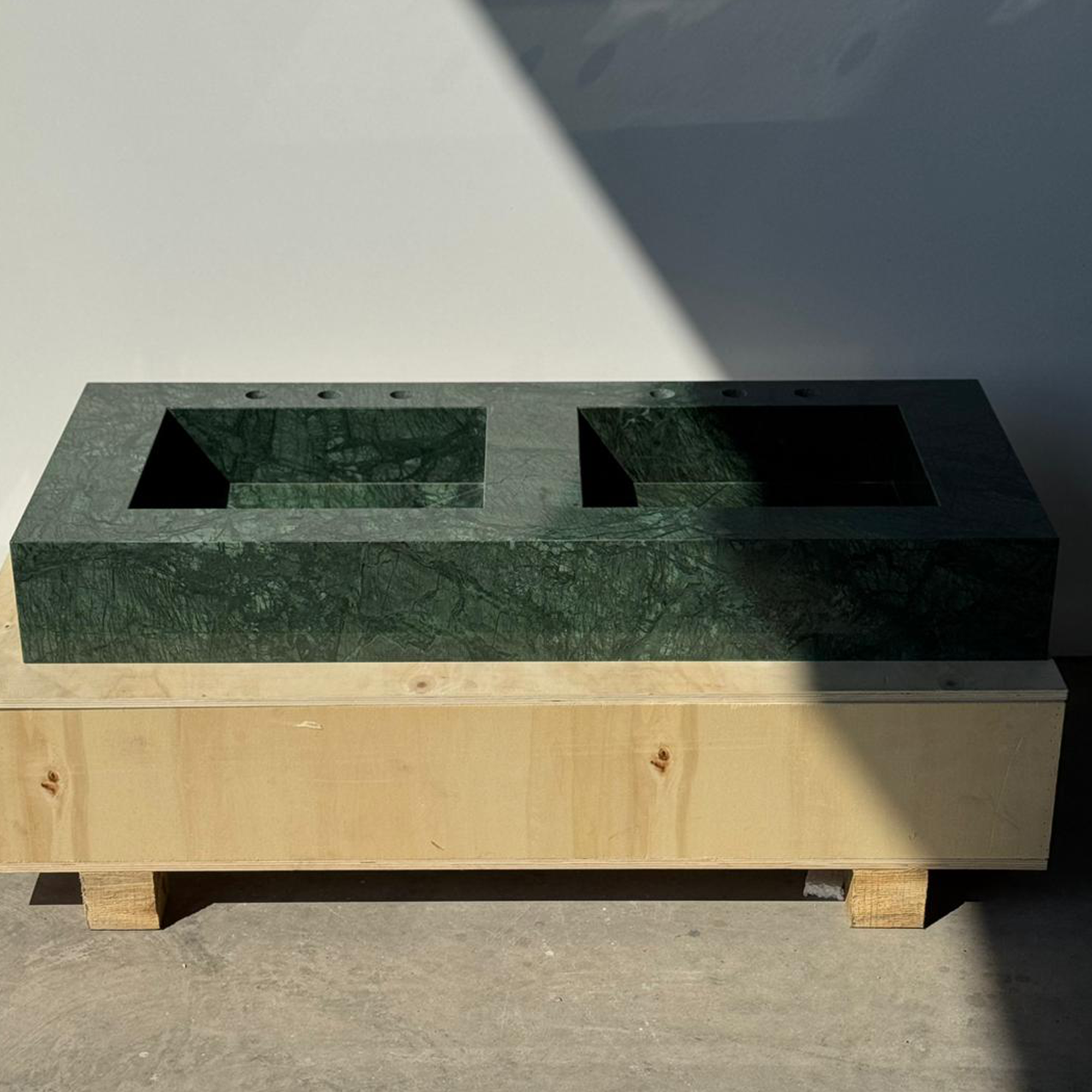 HANDCRAFTED VERDE GUATEMALA MARBLE CUSTOM DOUBLE SINK