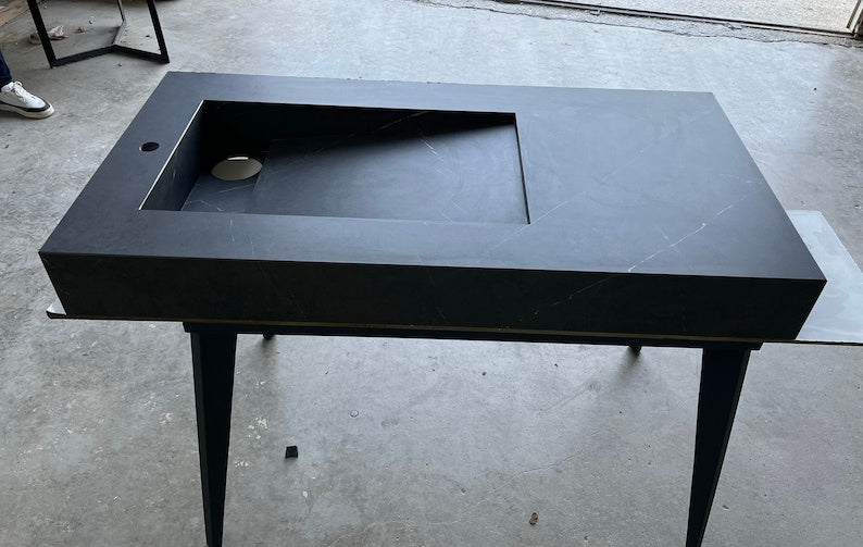 This high engineered porcelain sink was cut and assembled by hand delicately. Thanks to latest innovations in technology, it is possible to combine the beauty of natural stone appearance and imperviability. It is a long lasting and very durable material and absolutely safe for food.