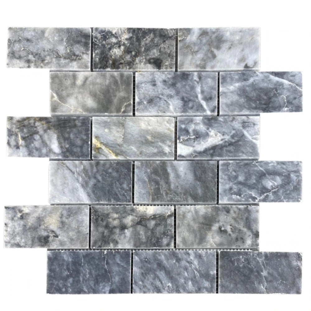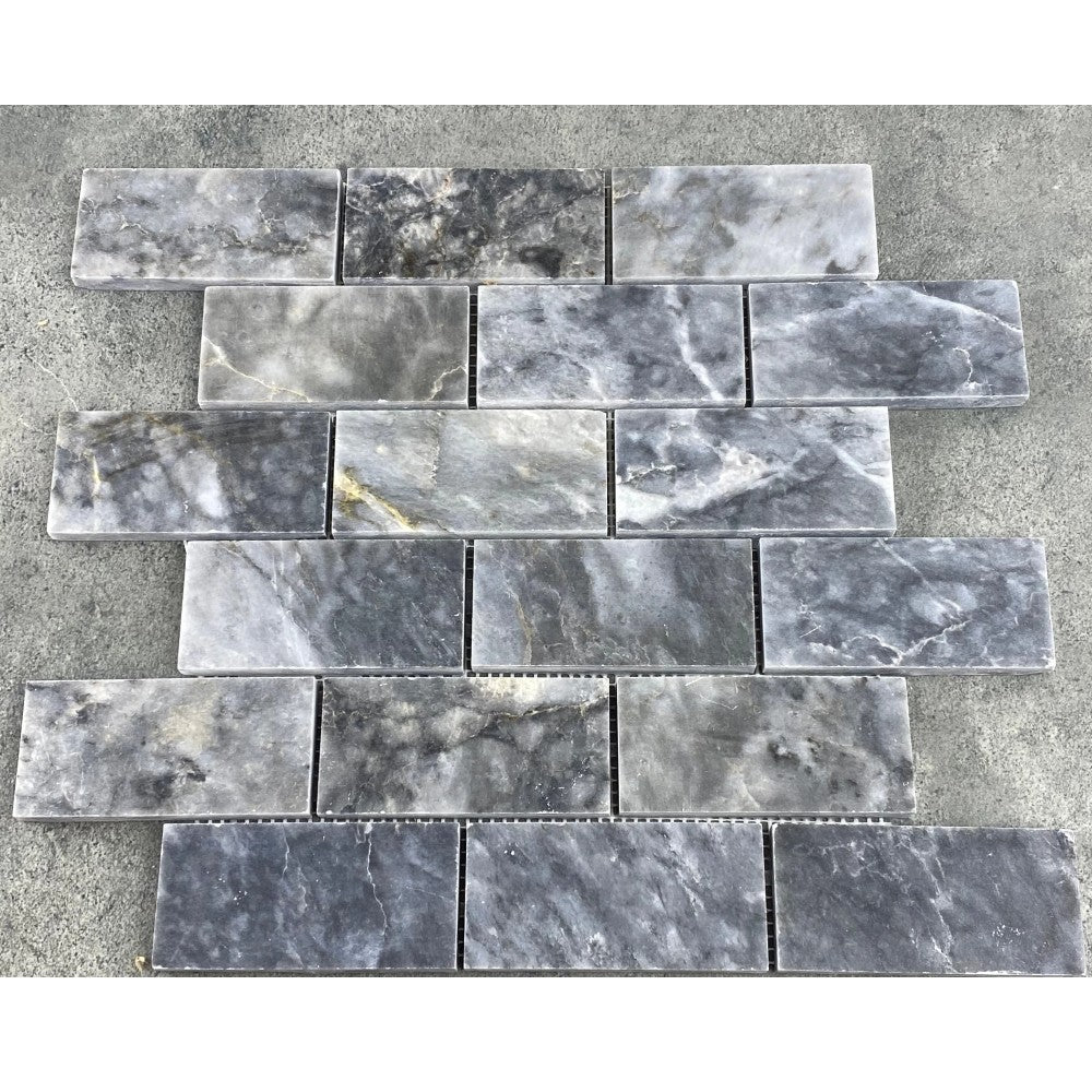Luna Sky Marble 2"x4" Brick on 12" x 12" Mesh Mosaic Tile