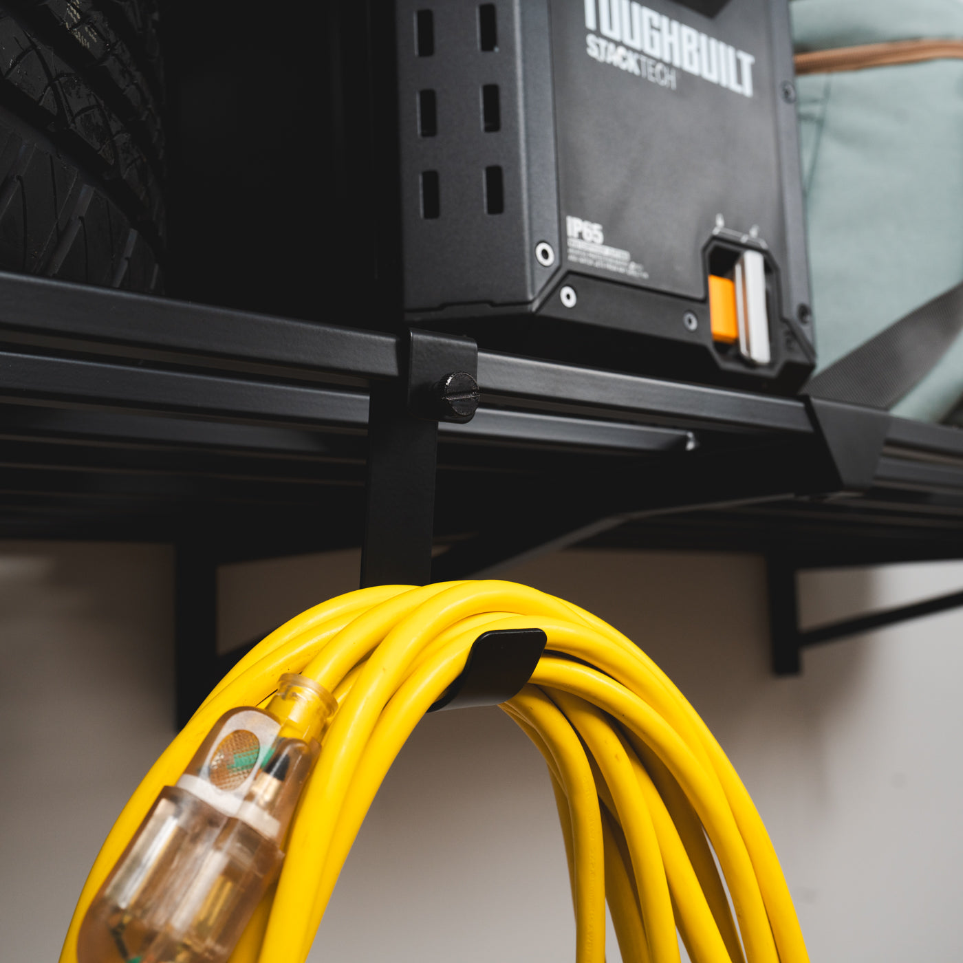 This minimalist, modern-style 1x4 garage shelf system is designed to hold all your clutter-causing items and free up floor space. With hooks for extra hanging storage, garage organization is easier and more accessible than ever.