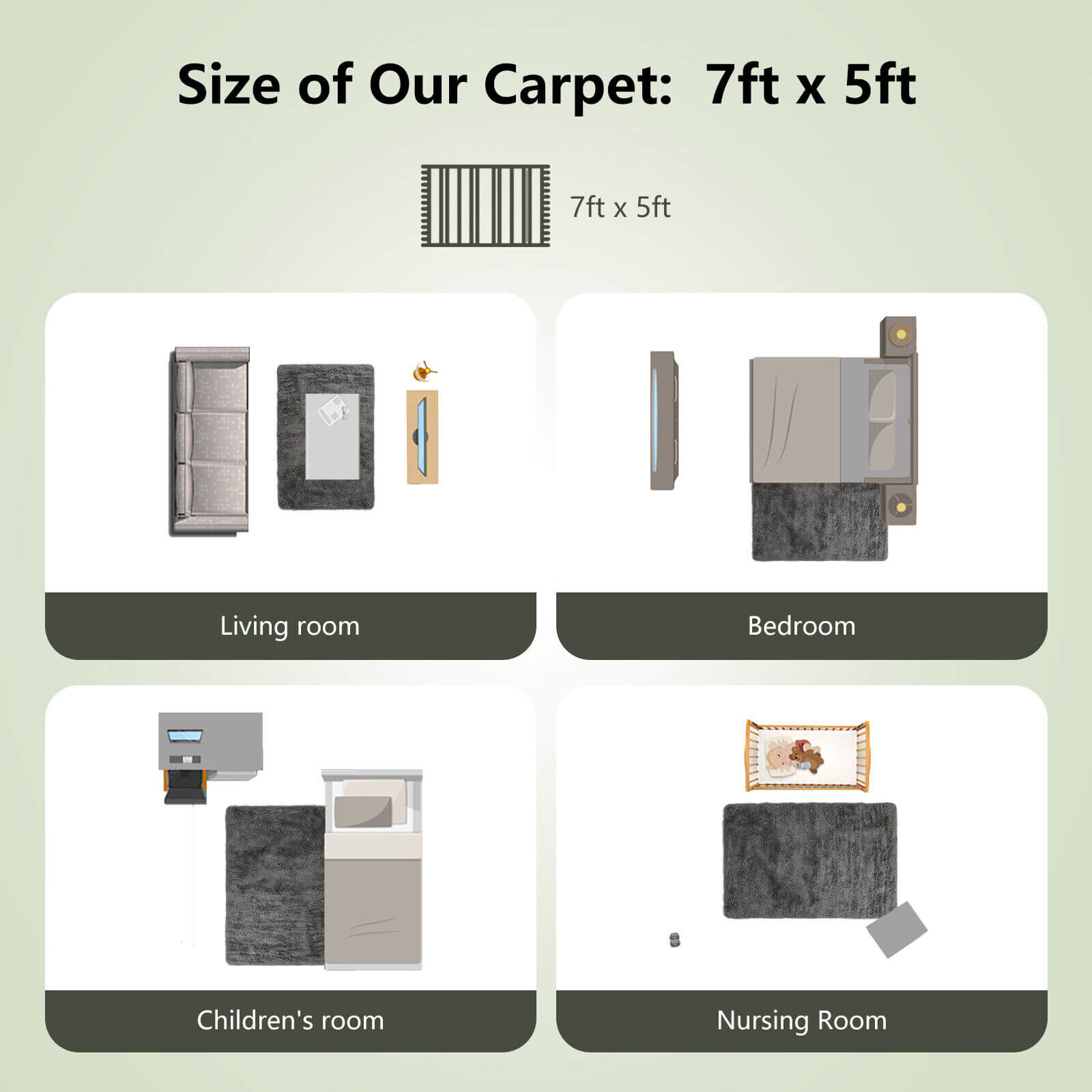 5 x 7 Feet Modern Rectangular Soft Shag Area Rug for Living Room Bedroom-Gray