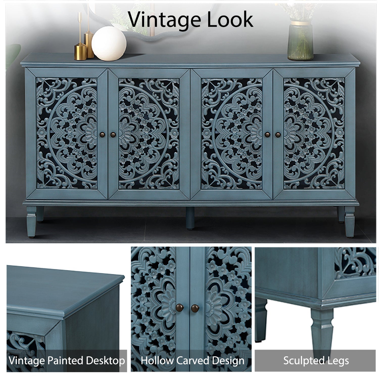 Home 60" Antique Buffet Cabinet with Floral Carvings and Adjustable Shelves