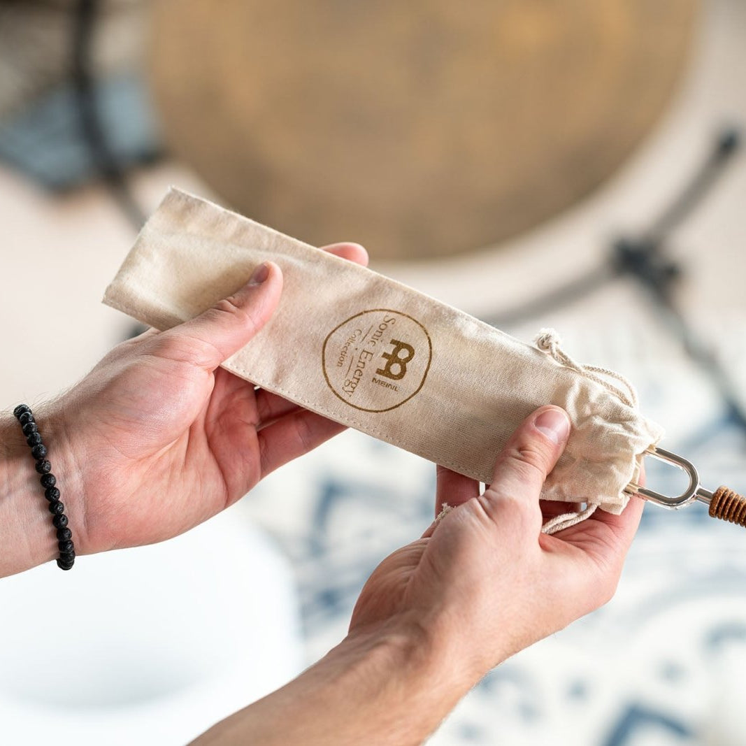 - Natural storage pouches for each tuning fork made of beige cotton