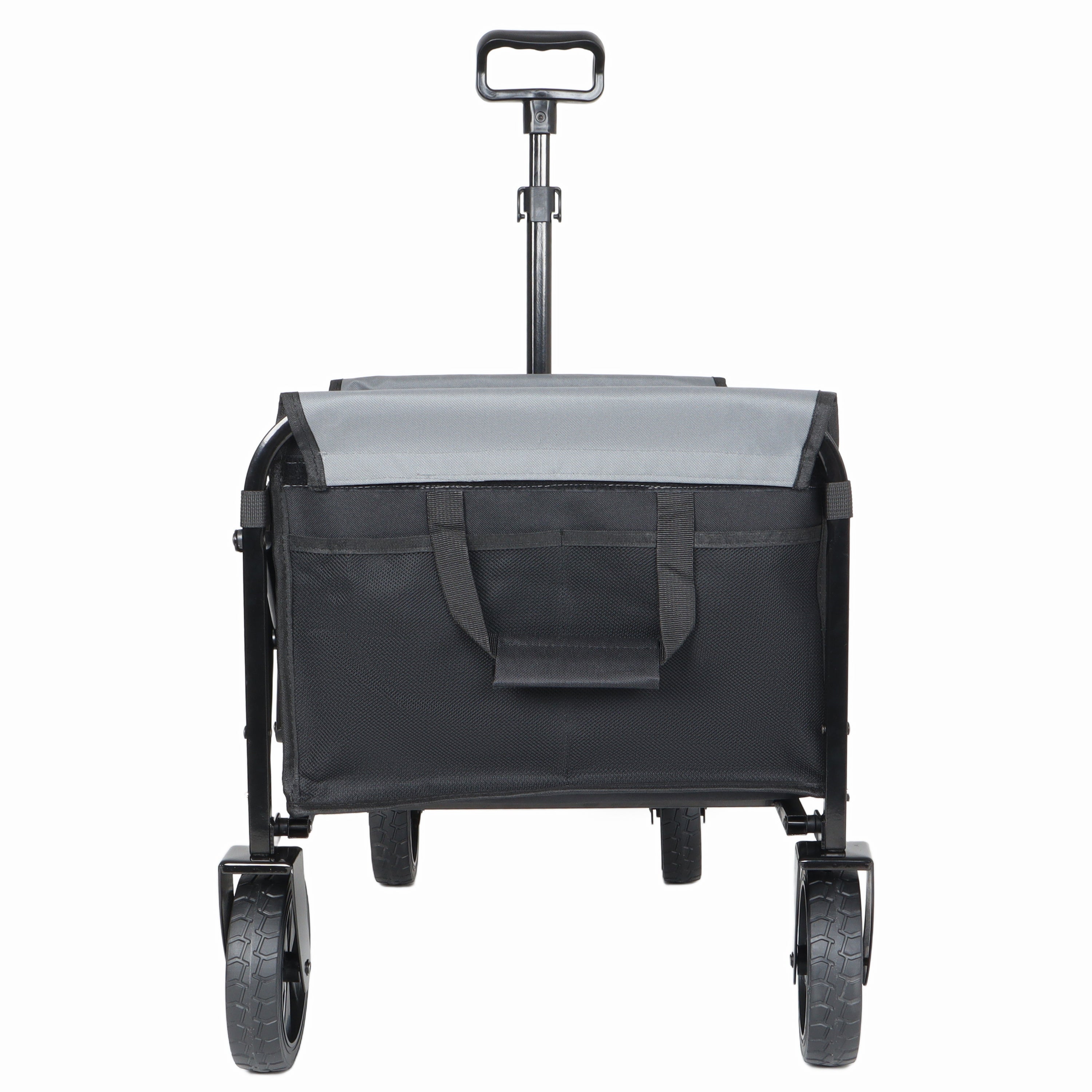 HouseOfZazla outdoor wagon with four wheels, foldable design, bench seat, and attached dog leash for versatile outdoor use.