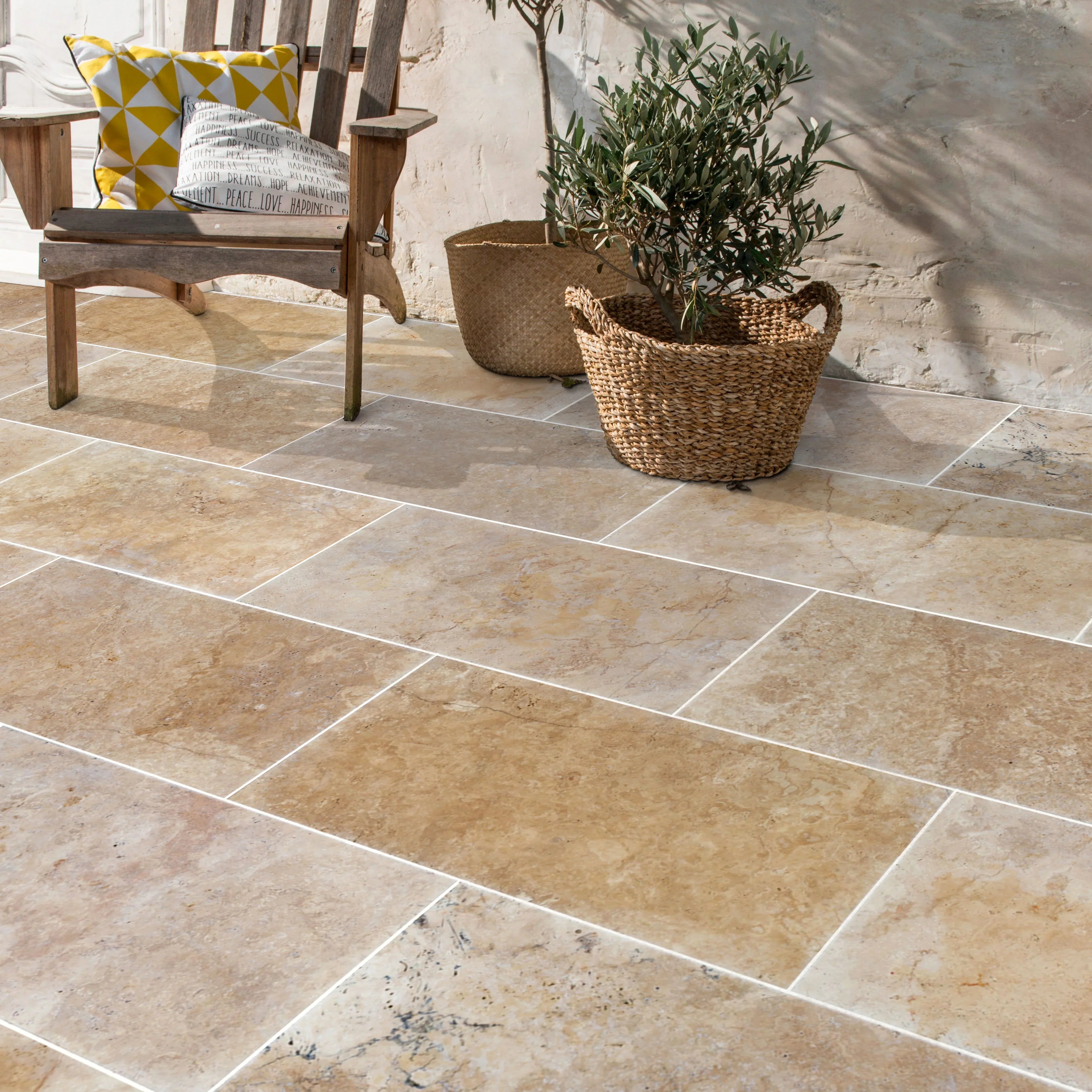 This large format, square travertine paver can withstand freeze-thaw cycles, making it suitable for most residential and light commercial outdoor flooring applications. Additionally, it's slip resistant and its color and design won't fade over time.