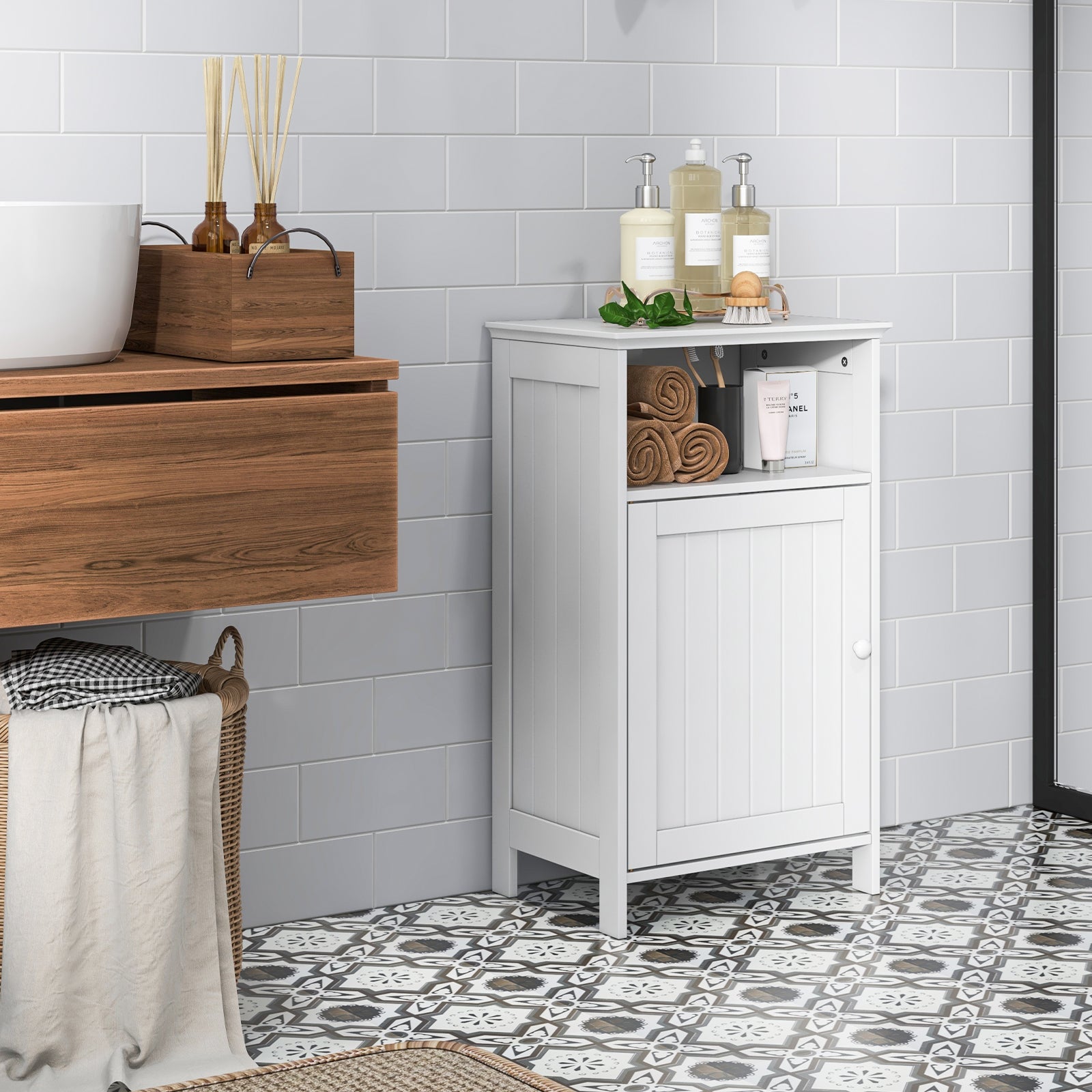 Organize your bathroom effortlessly with the ShopDirectDeals freestanding storage cabinet, designed to provide ample space and keep essentials within easy reach.