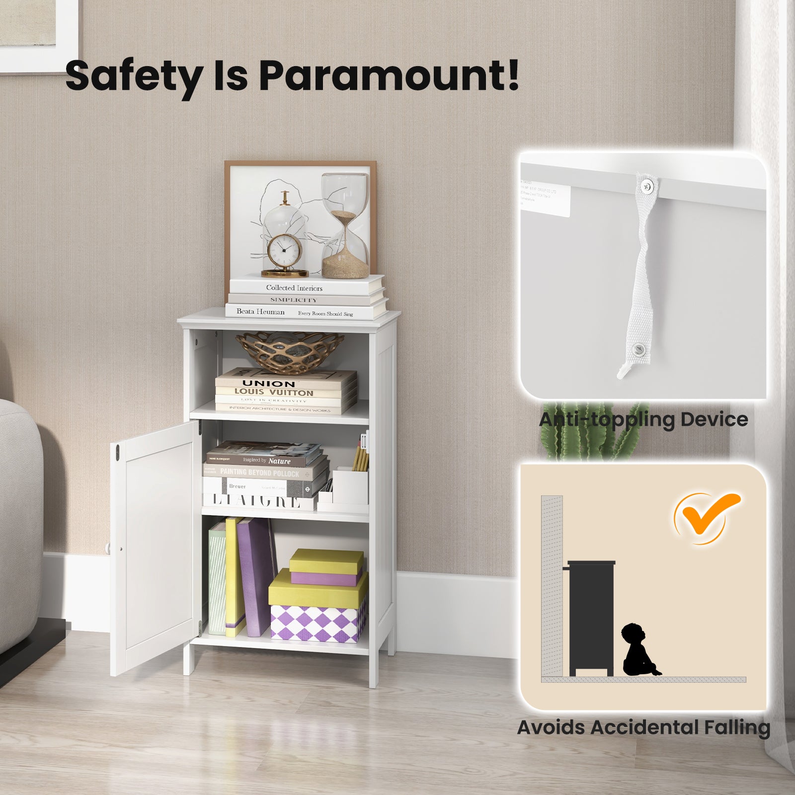 Ideal for bathroom storage of toiletries, towels, and cleaning products. Also suitable for living rooms or other spaces requiring neat, accessible storage solutions.