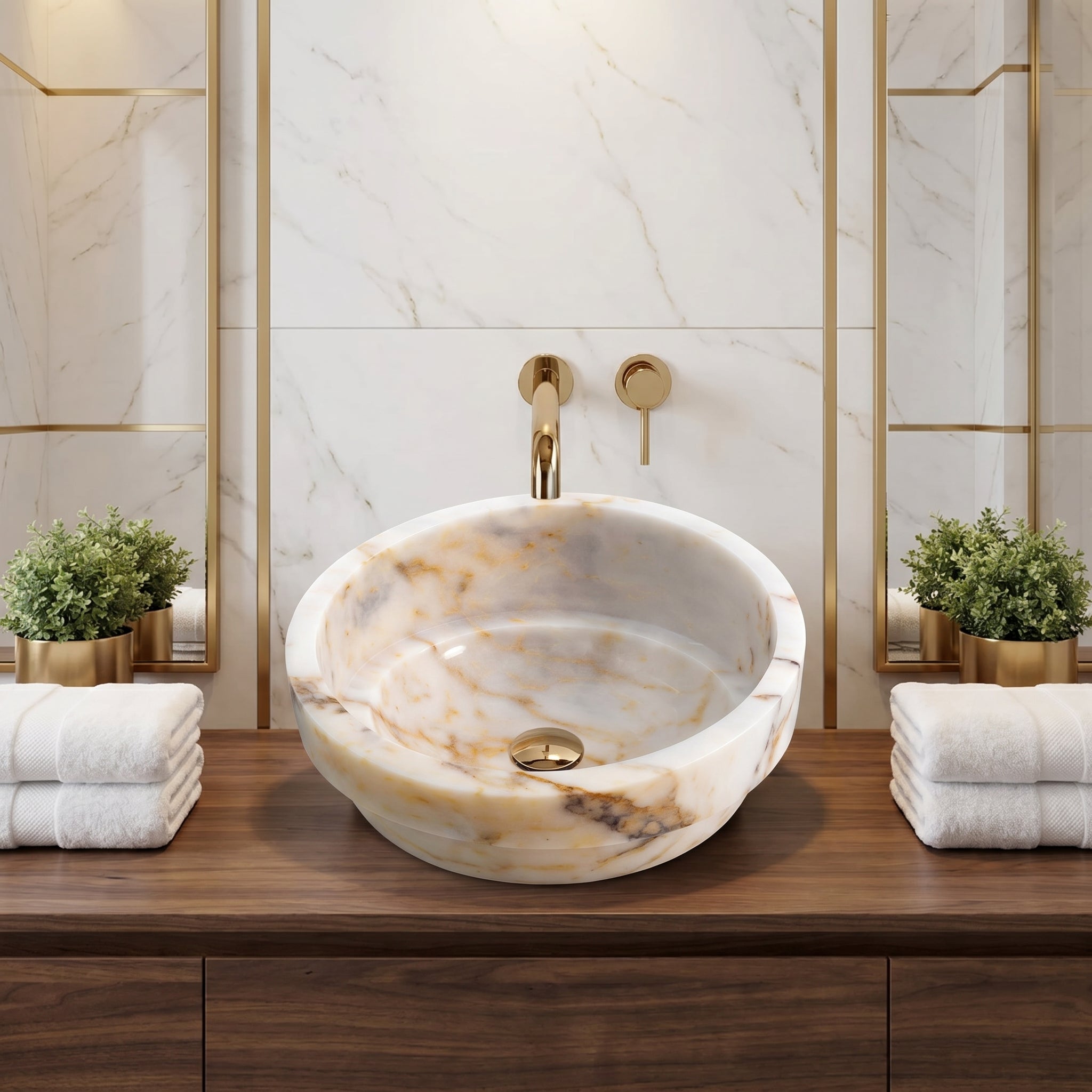 Bianco Giallo Marble Special Design Vessel Sink Bowl Polished (D)16" (H)9"
