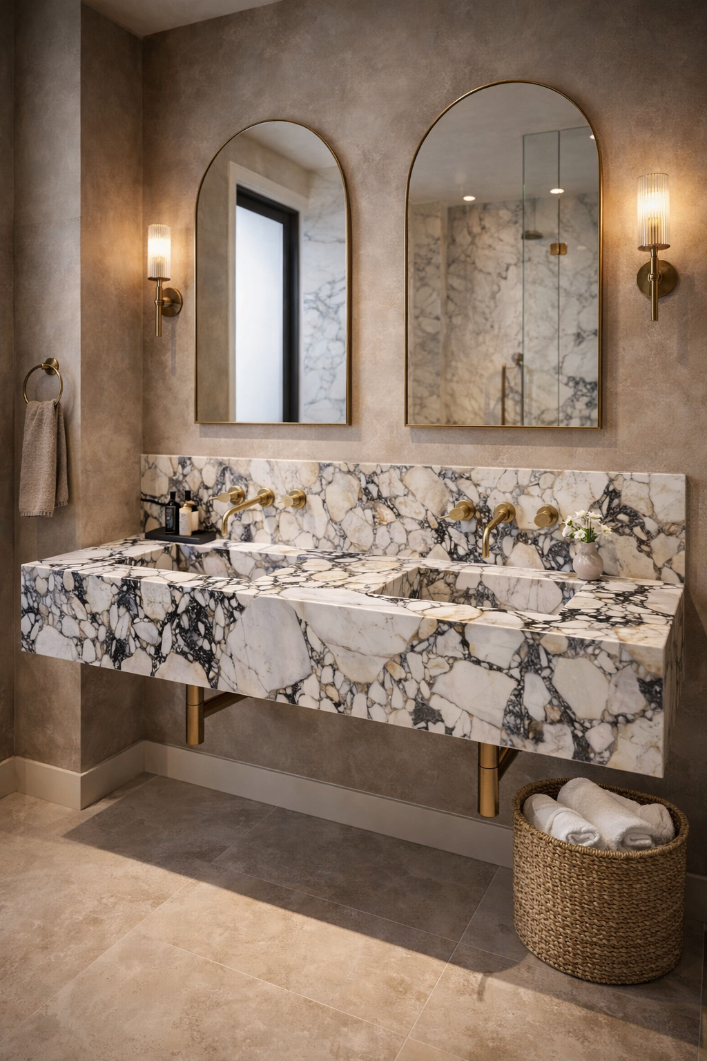 Calacatta Viola Marble Double Sink Wall-mount Bathroom Sink with 10" Backsplash (W)20" (L)80" (H)8"