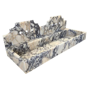Calacatta Viola Marble Wall-mount Bathroom Sink with Fluted with Backsplash (W)20" (L)55" (H)6"