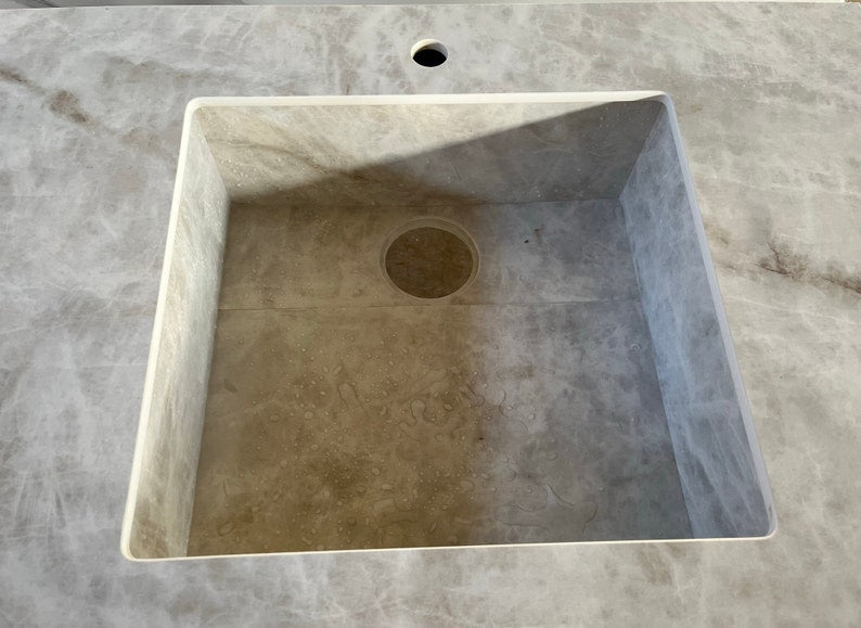 This high engineered porcelain sink was cut and assembled by hand delicately. Thanks to latest innovations in technology, it is possible to combine the beauty of natural stone appearance and imperviability. It is a long lasting and very durable material and absolutely safe for food.
