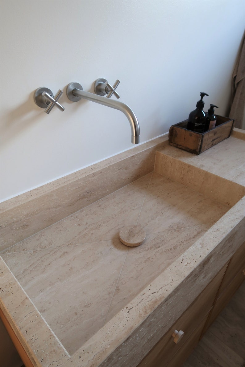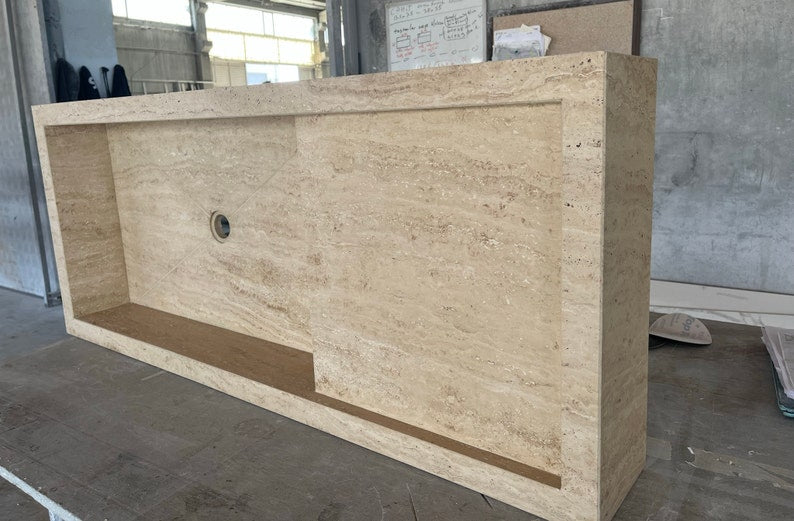 This custom travertine sink is handmade, durable, long lasting, washable and unique.