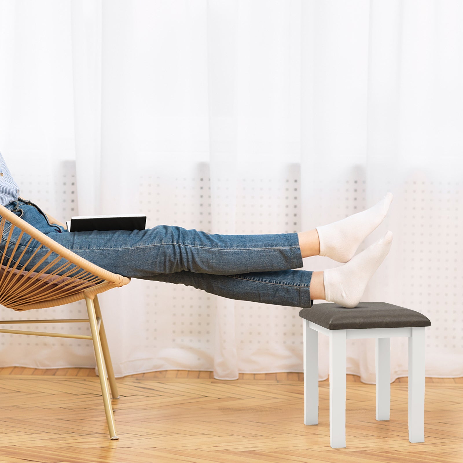 Faux Leather Vanity Stool Chair Set of 2 for Makeup Room and Living Room-Gray and White