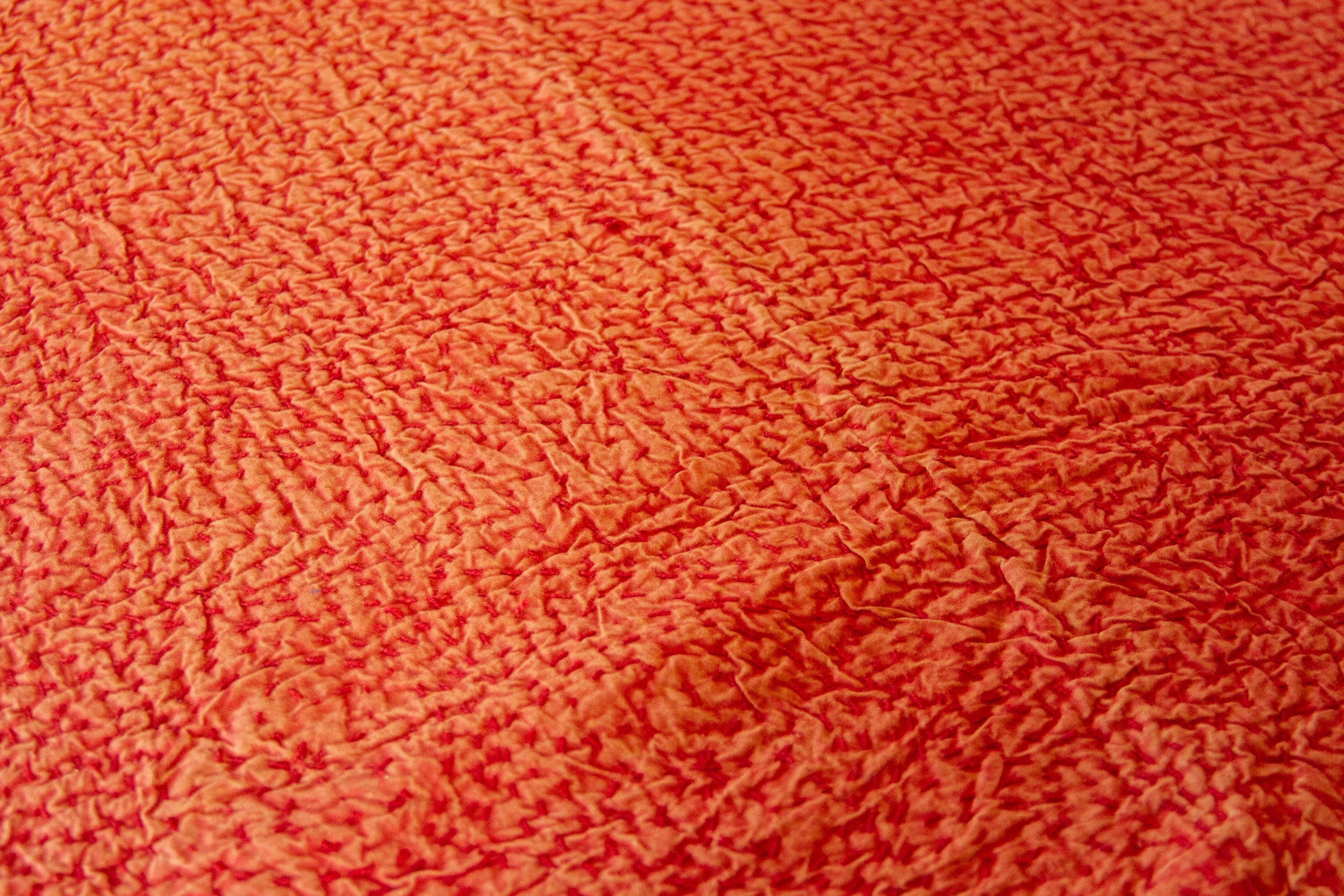 Celebrate the feminine with the handmade Filanan Gudari Bed Cover. This ornate textile is cotton based and adorned with the Meghval tribe's thread work. The embroidered medallions in this incredibly soft piece of art represent the circle of life. This coverlet shows discoloration and faded spots, please refer to photos.n.