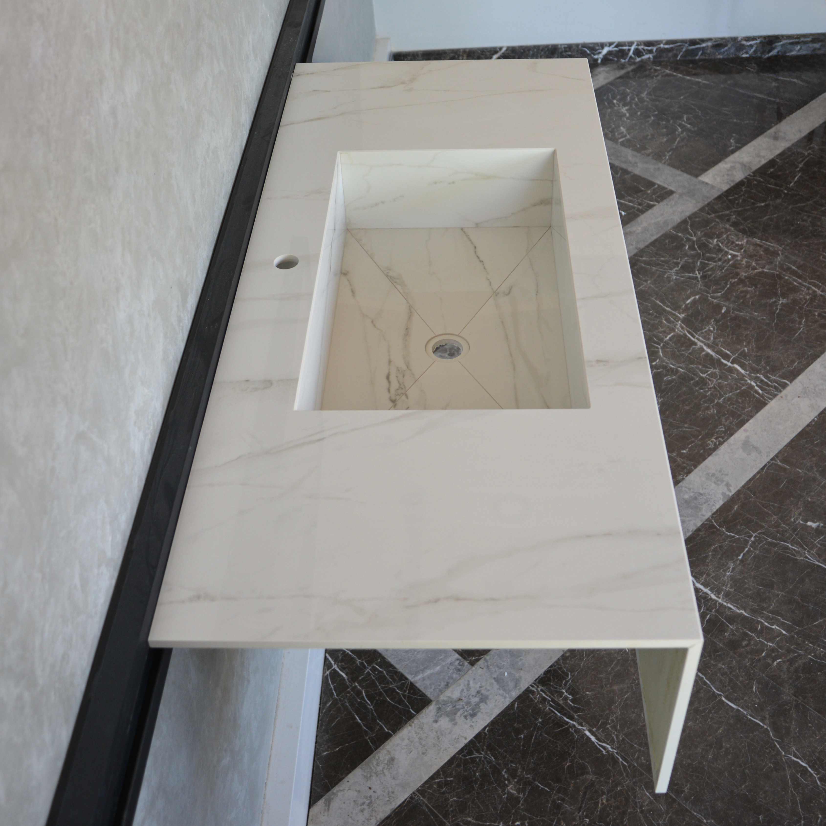 Calacatta Glory Custom Sink / Polished Finish White Porcelain Vanity