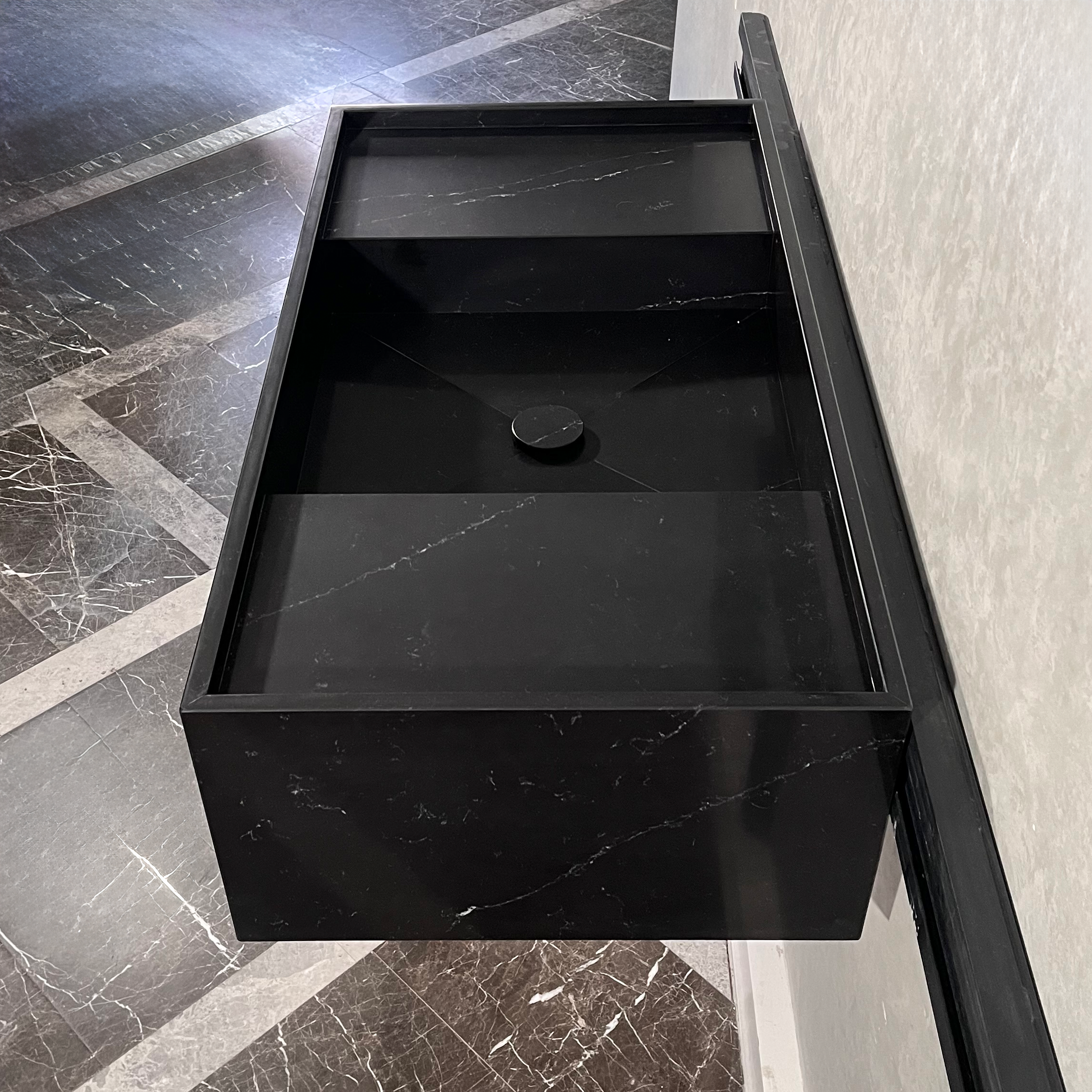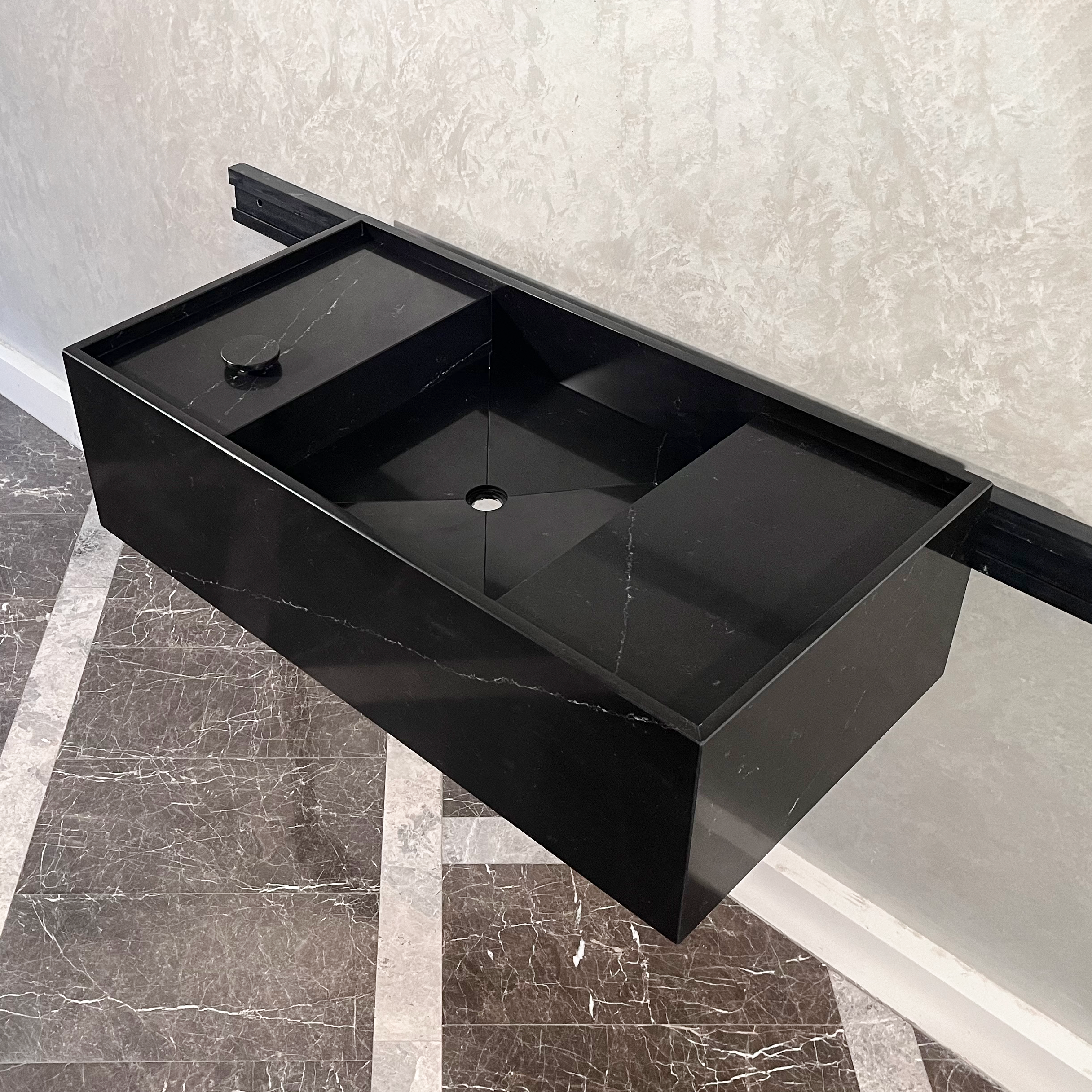 Custom Black Quartz Bathroom Sink / Polished Finish Black Quartz Vanity