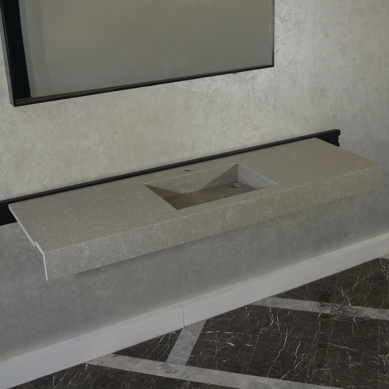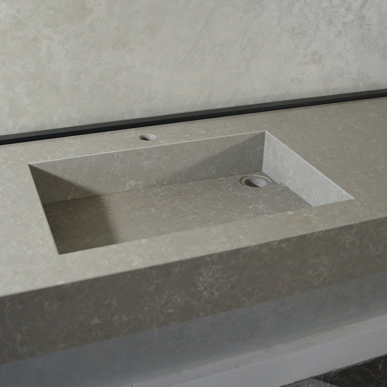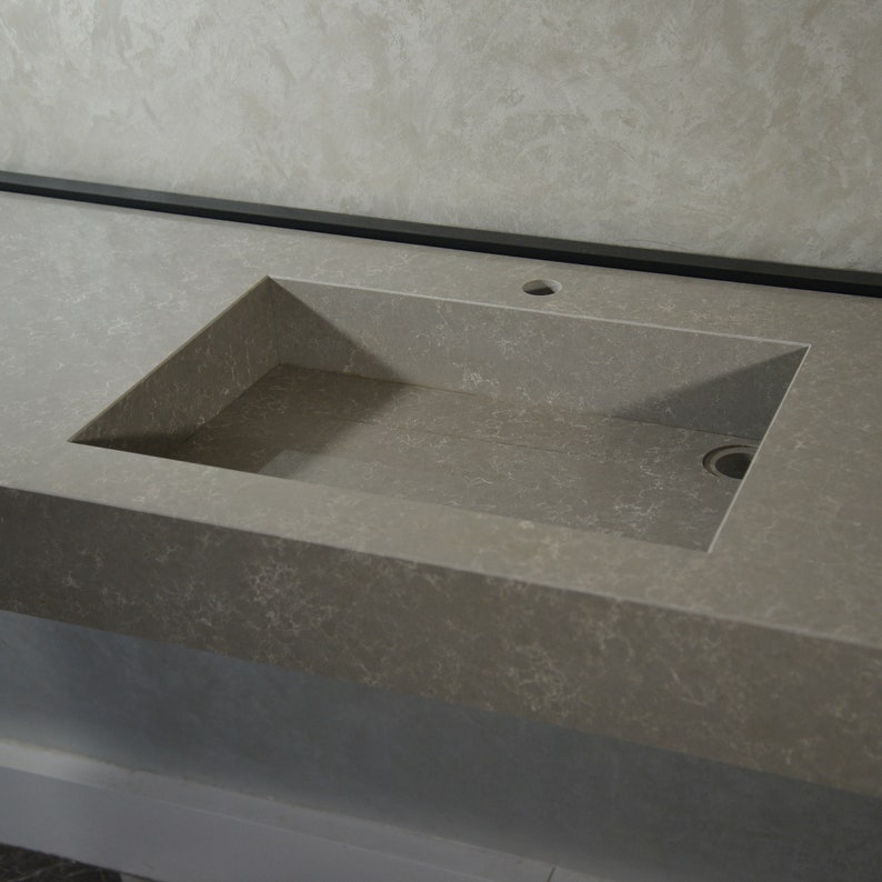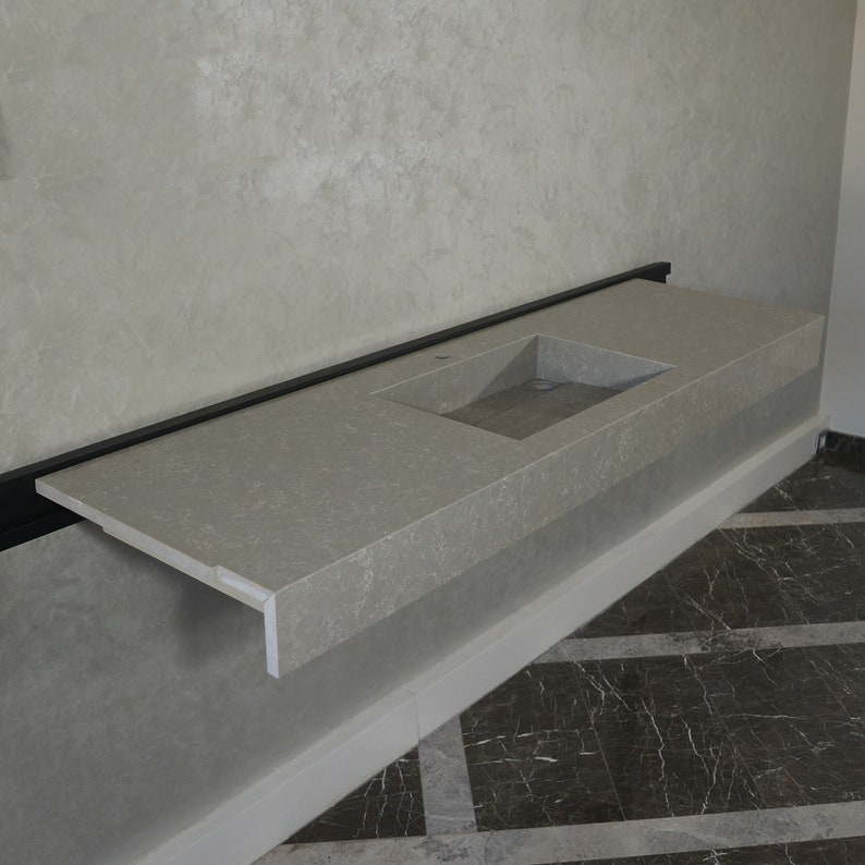 This durable and elegant quartz sink was cut and assembled by hand delicately. Thanks to latest innovations in technology, it is possible to create super durable and stylish slabs. It is a long lasting and very durable material.
