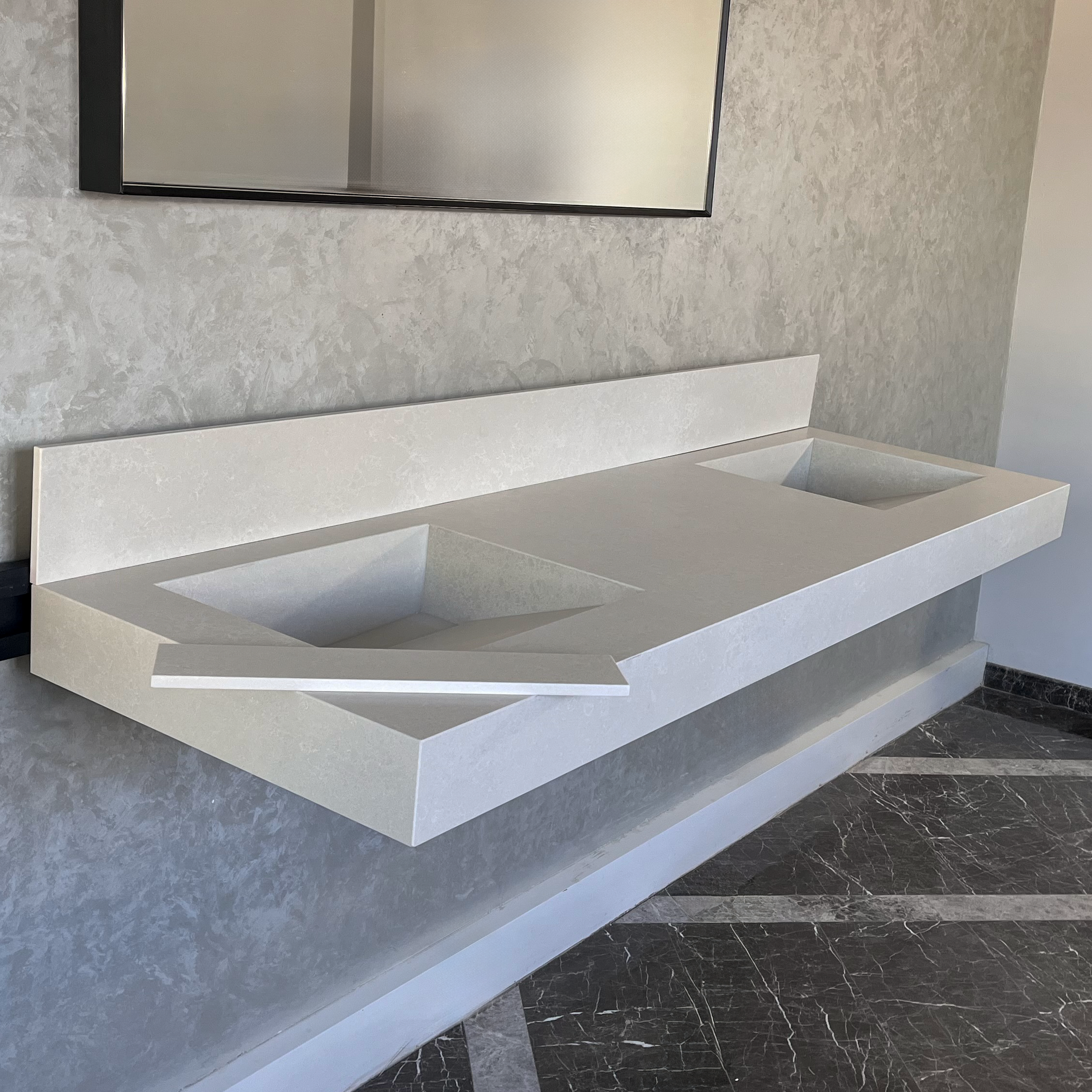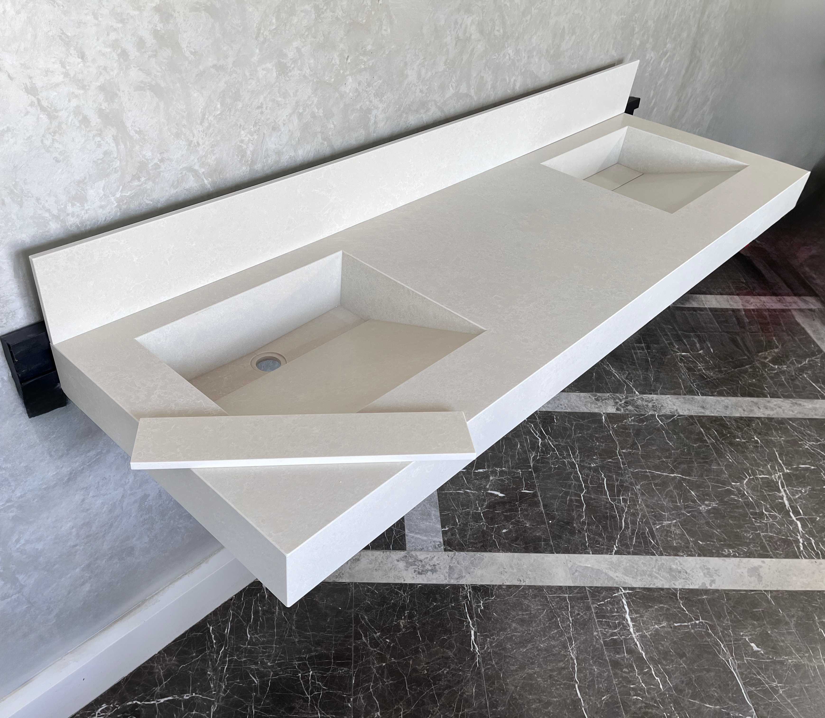 HANDCRAFTED CUSTOM QUARTZ DOUBLE SINK / SUITABLE FOR WALL MOUNTING QUARTZ VANITY