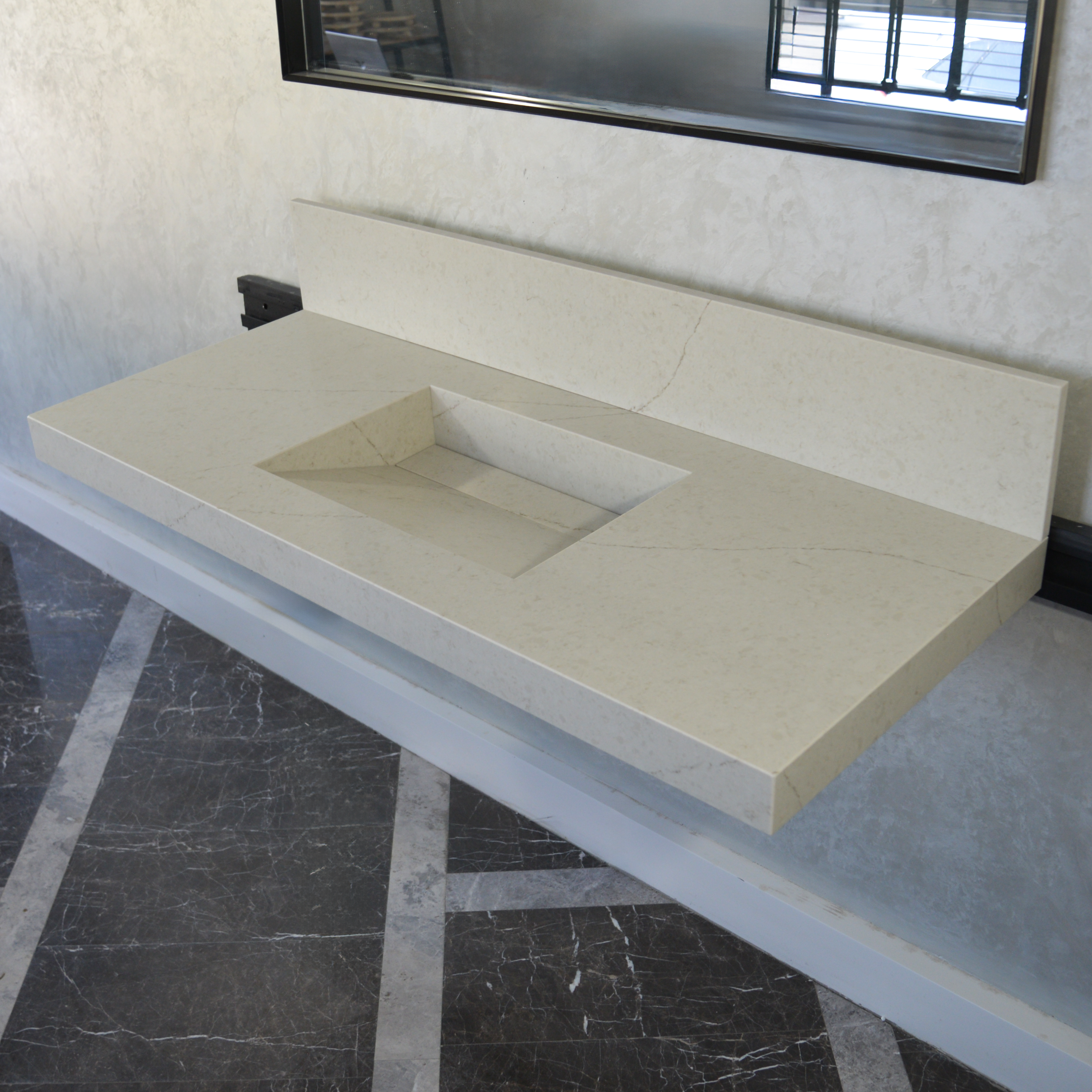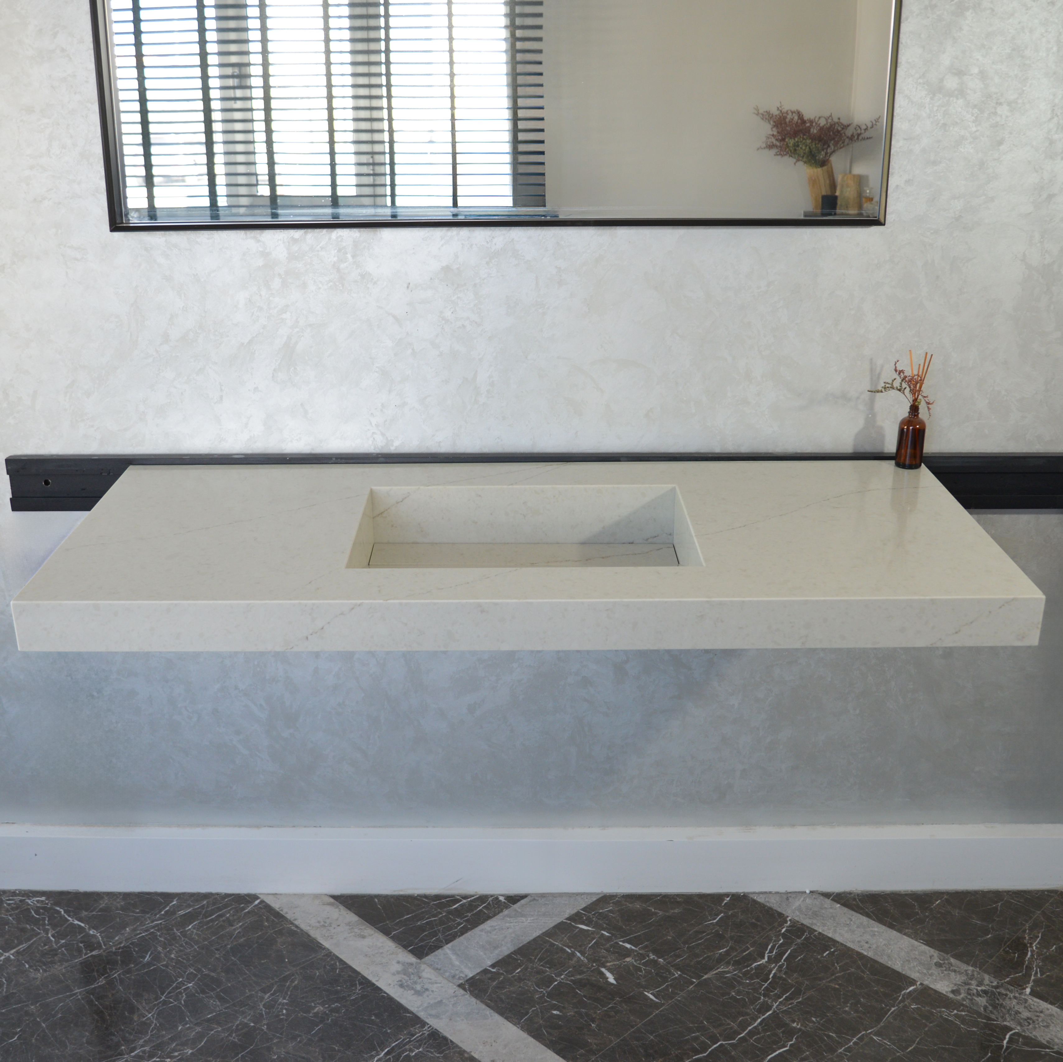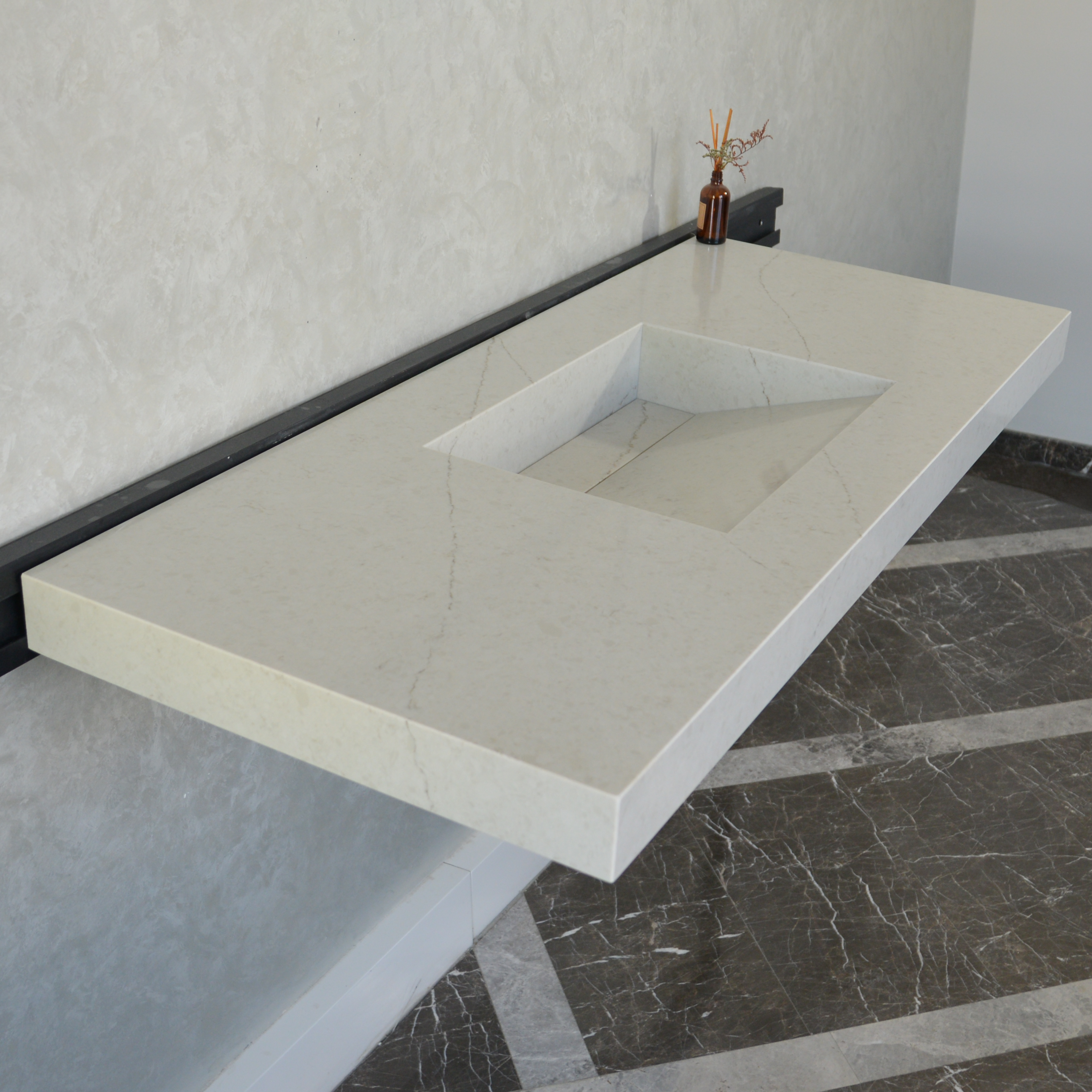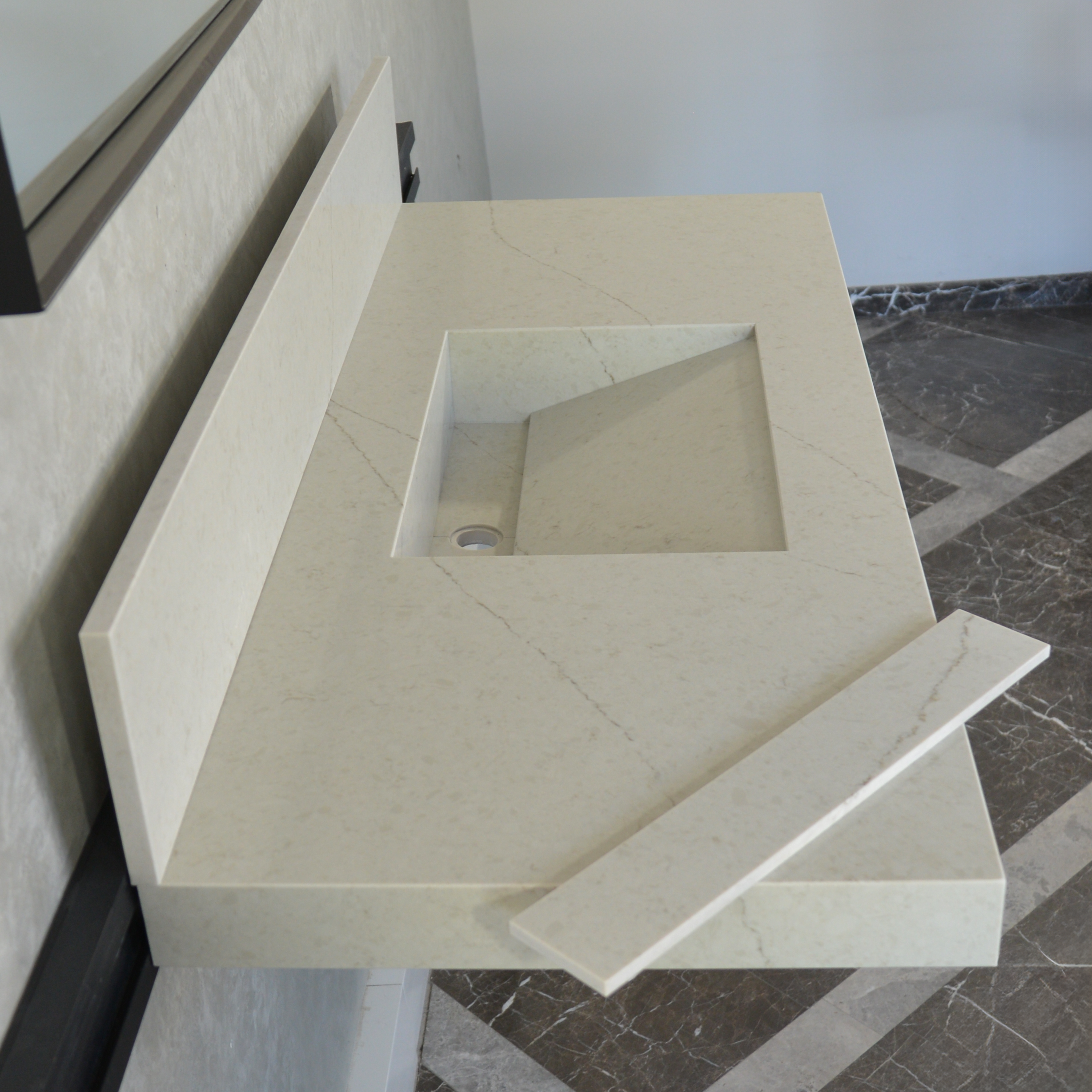 Custom Quartz Countertop, Bathroom Countertop, Vessel Sink, Sink Integrated Custom Quartz Countertop, Quartz Bathroom Sink, Quartz Sink