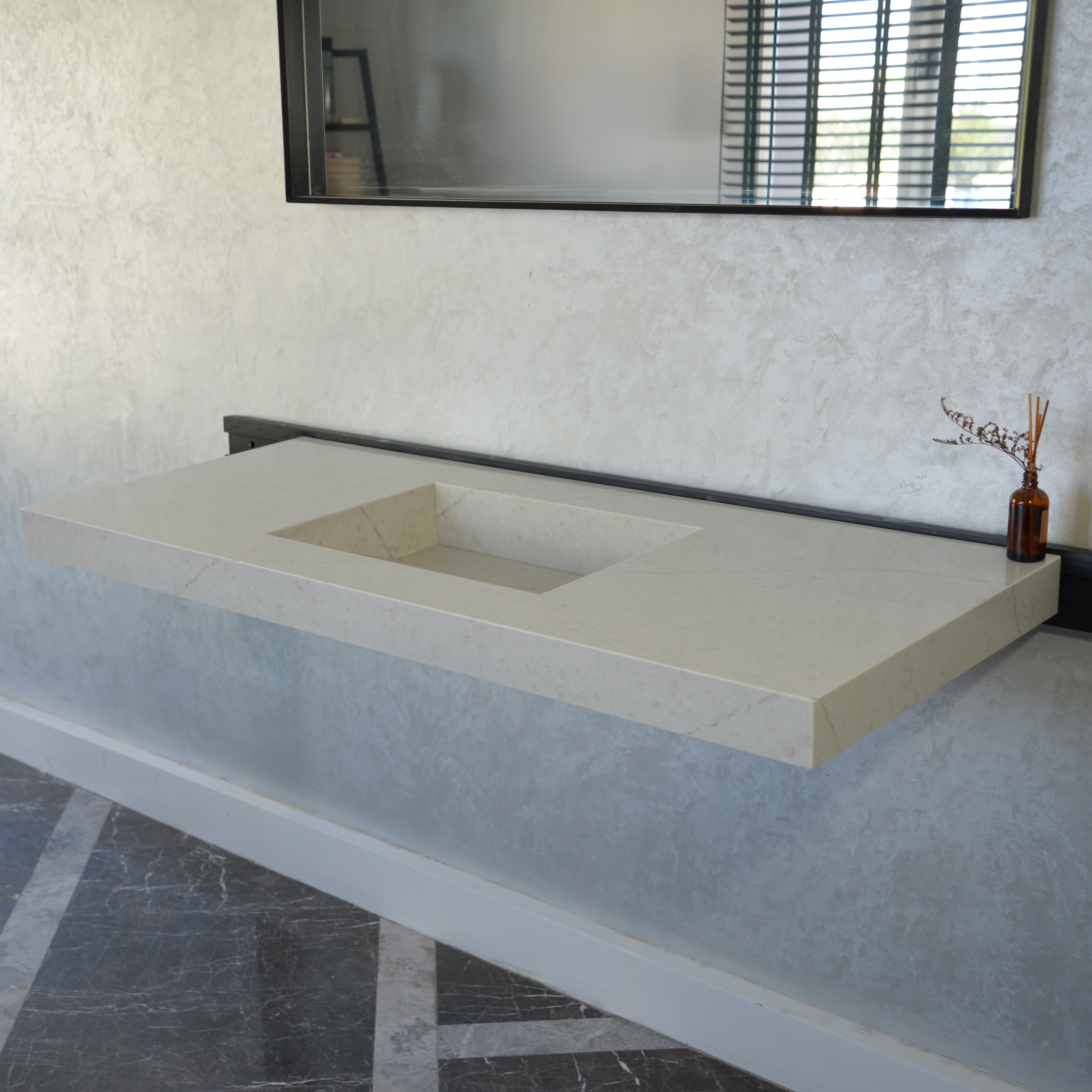 This durable and elegant quartz sink was cut and assembled by hand delicately. Thanks to latest innovations in technology, it is possible to create super durable and stylish slabs. It is a long lasting and very durable material.