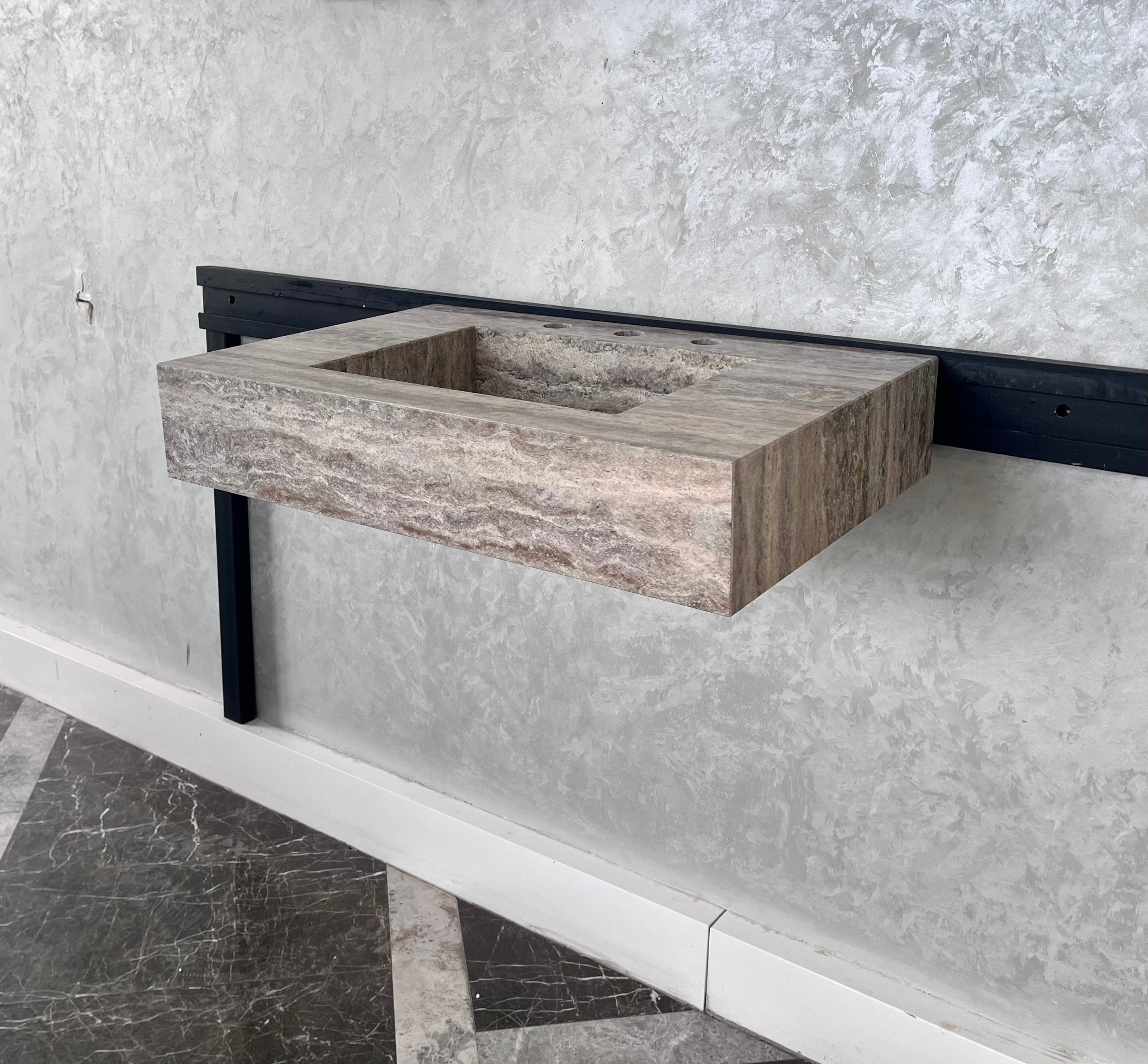 HANDCRAFTED CUSTOM SILVER TRAVERTINE SINK