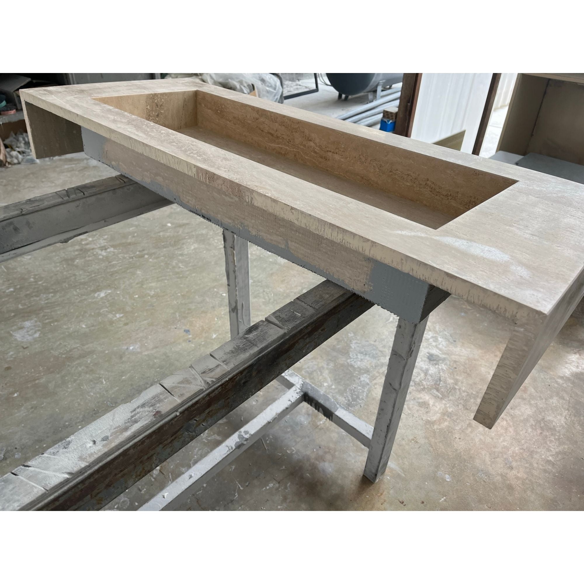 HANDCRAFTED CUSTOM TRAVERTINE TROUGH SINK