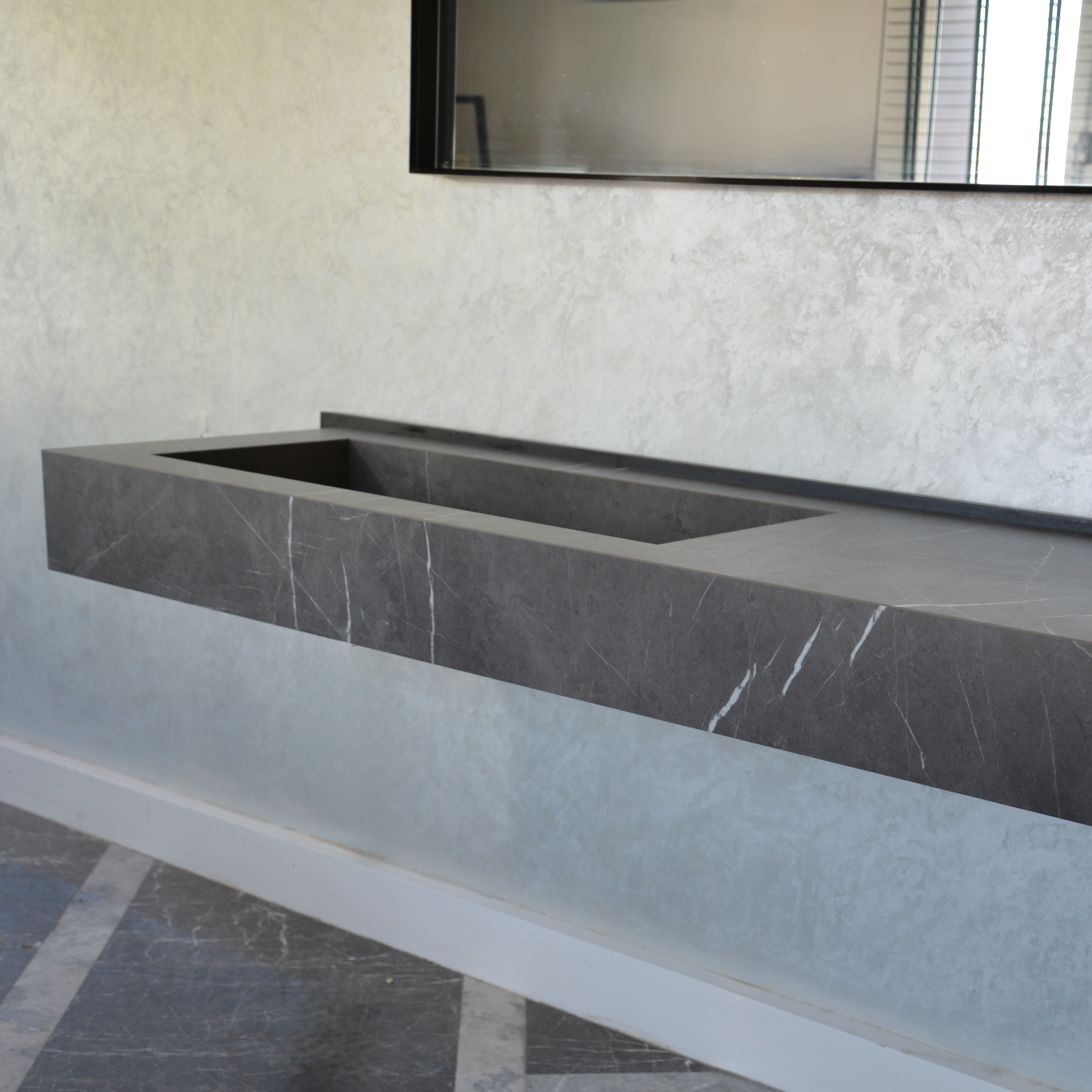 This high engineered porcelain sink was cut and assembled by hand delicately. Thanks to the latest innovations in technology, it is possible to combine the beauty of natural stone appearance and imperviability. It is a long lasting and very durable material and absolutely safe for food.