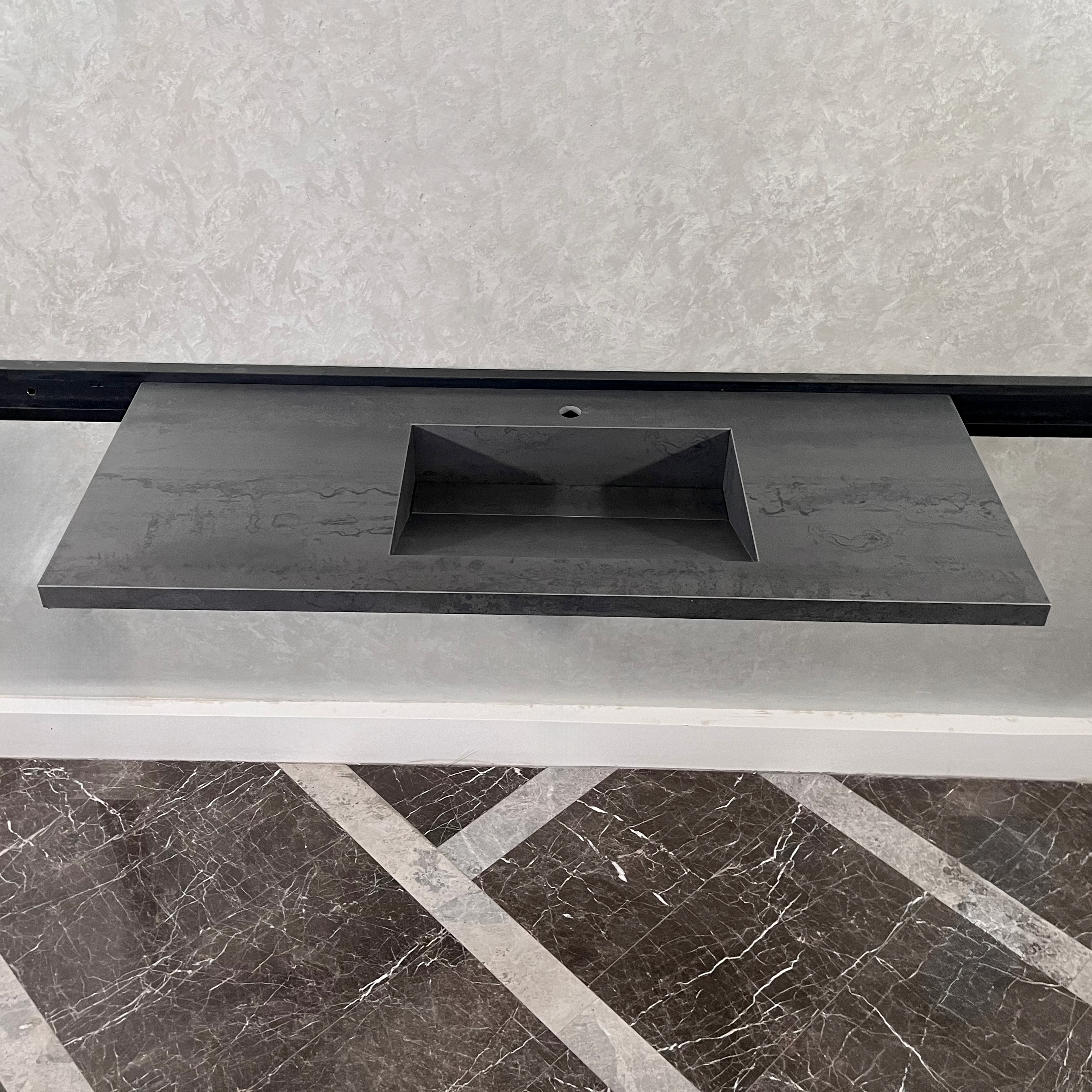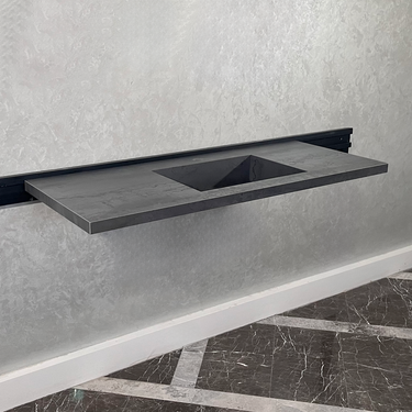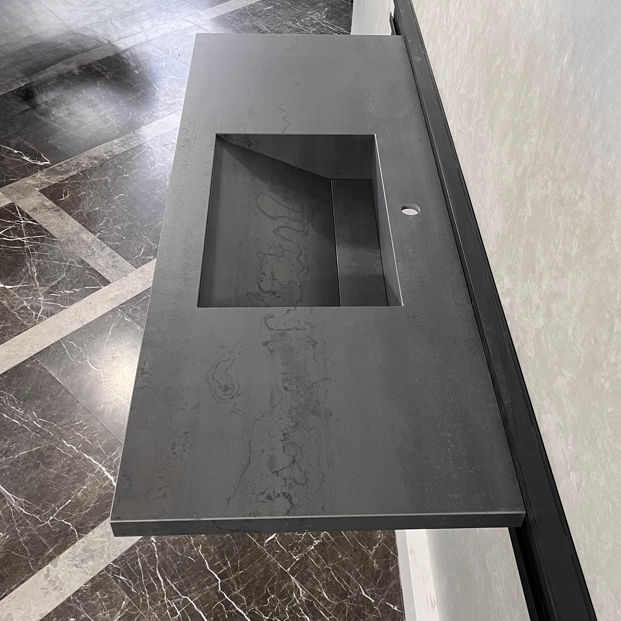Metal Dark Grey Custom Sink / Matte Finish Grey Porcelain Vanity