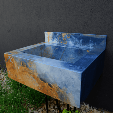 This high engineered porcelain sink was cut and assembled by hand delicately. Thanks to the latest innovations in technology, it is possible to combine the beauty of natural stone appearance and imperviability. It is a long lasting and very durable material and absolutely safe for food.