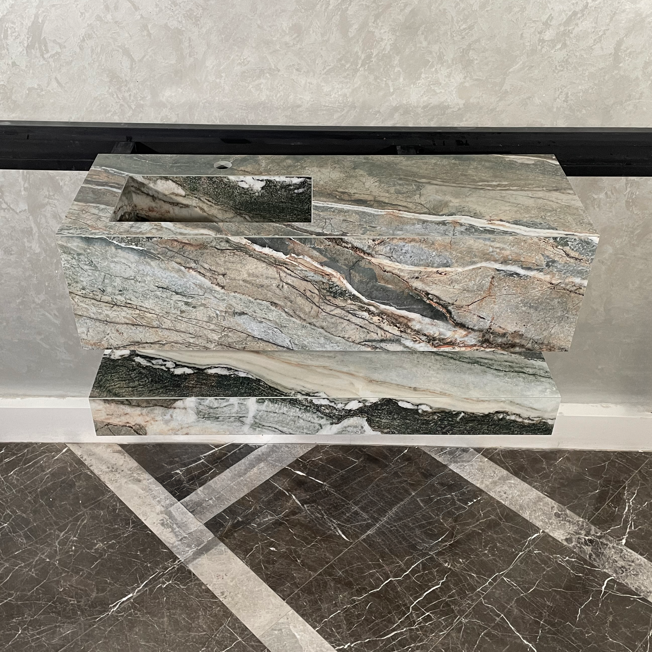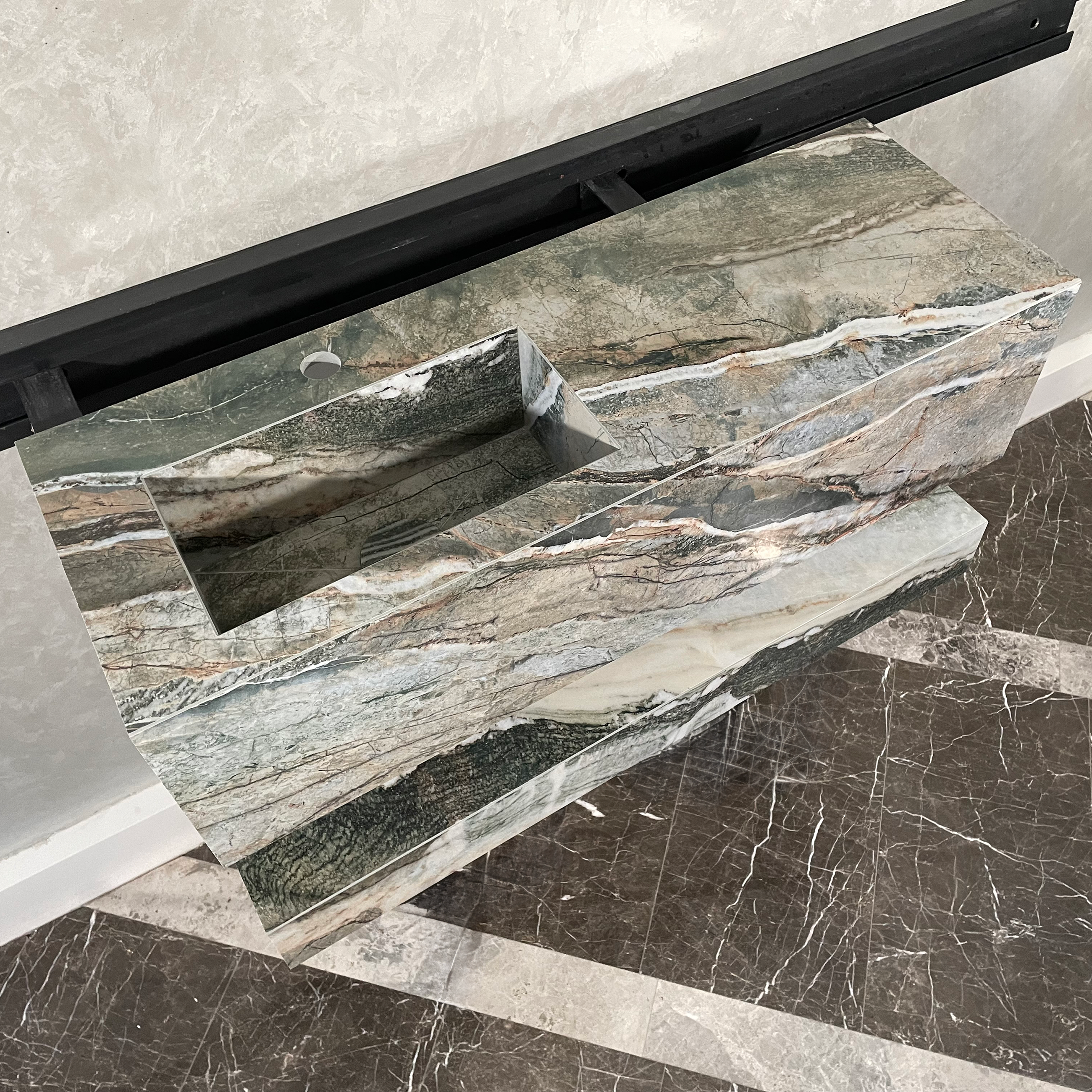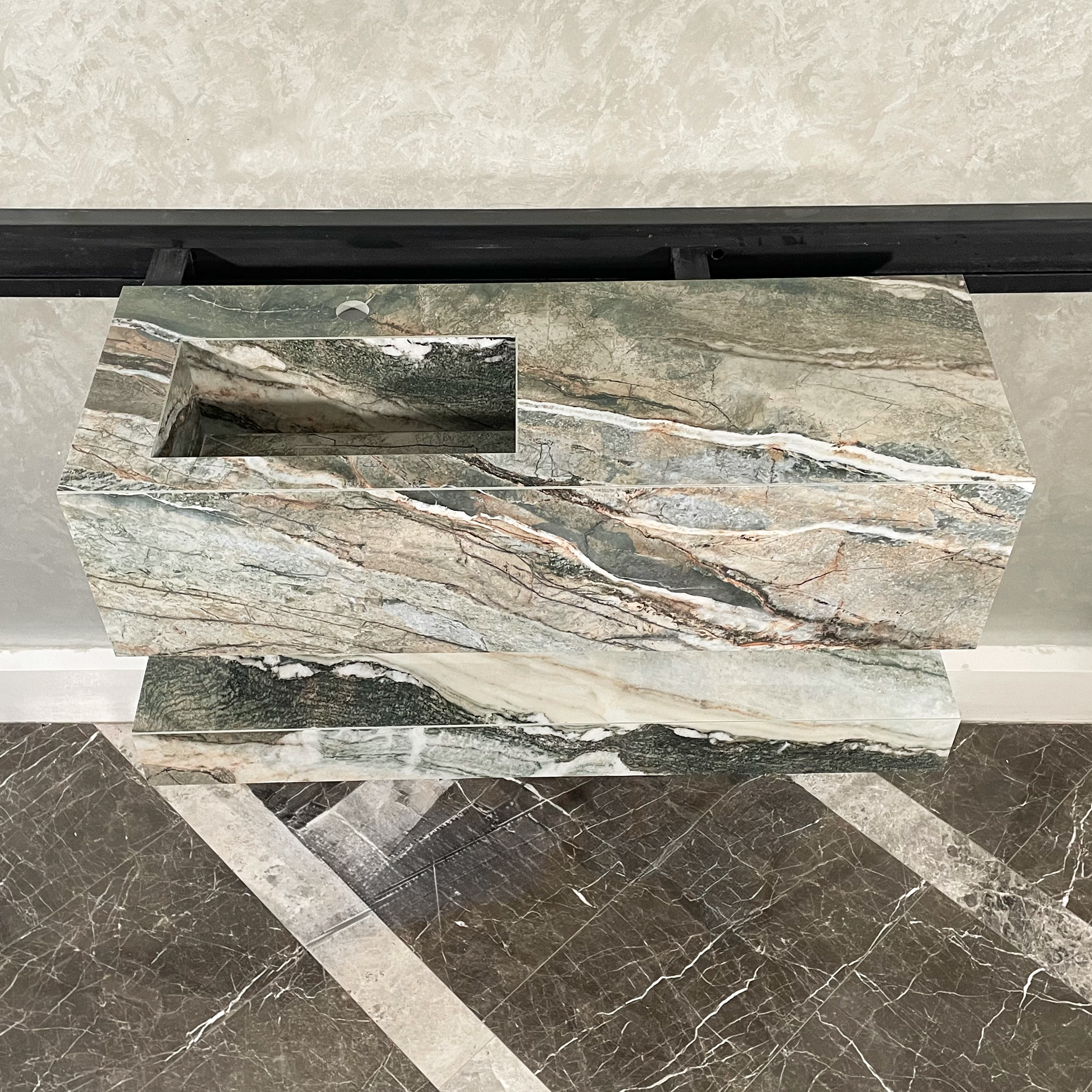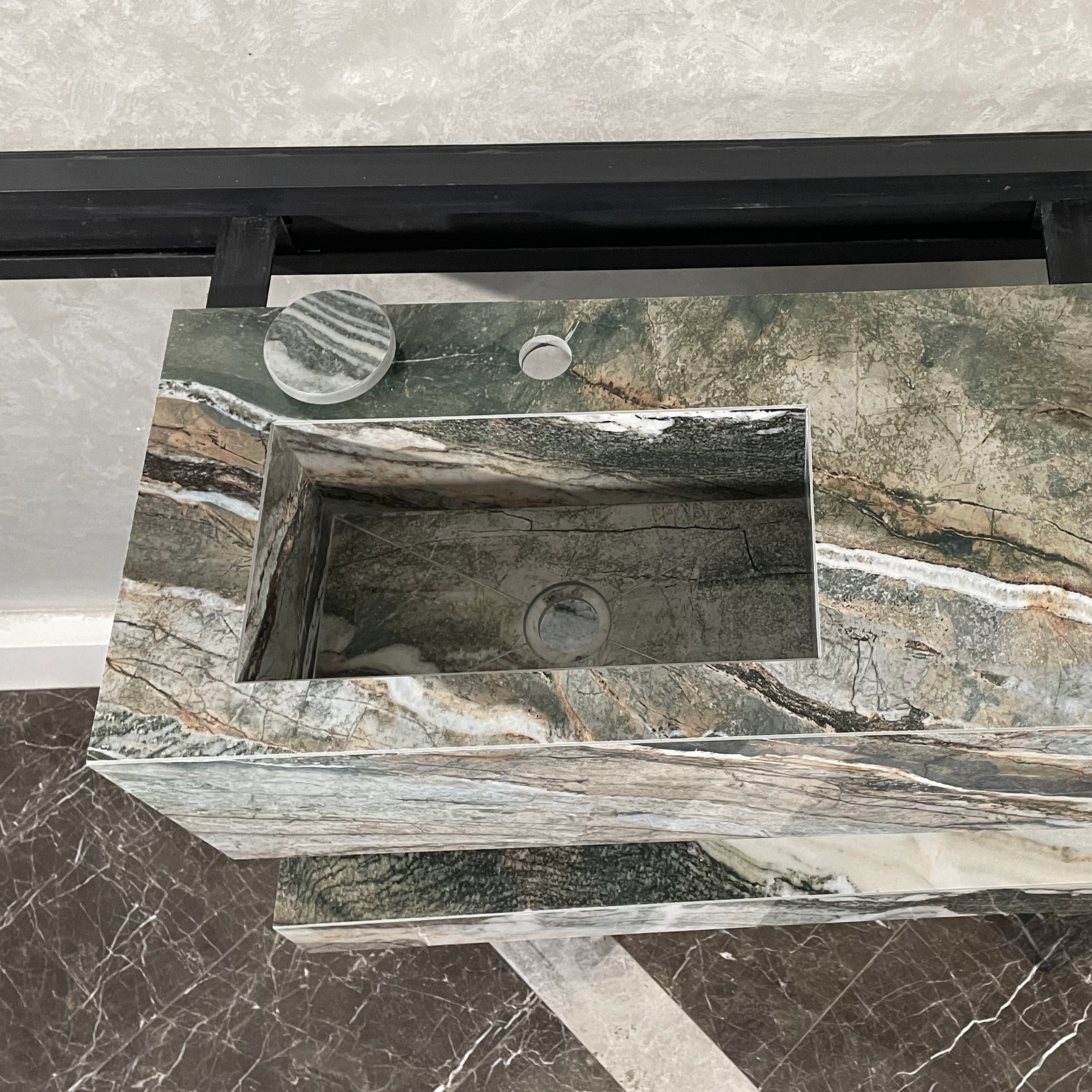 This high engineered porcelain sink was cut and assembled by hand delicately. Thanks to latest innovations in technology, it is possible to combine the beauty of natural stone appearance and imperviability. It is a long lasting and very durable material and absolutely safe for food.