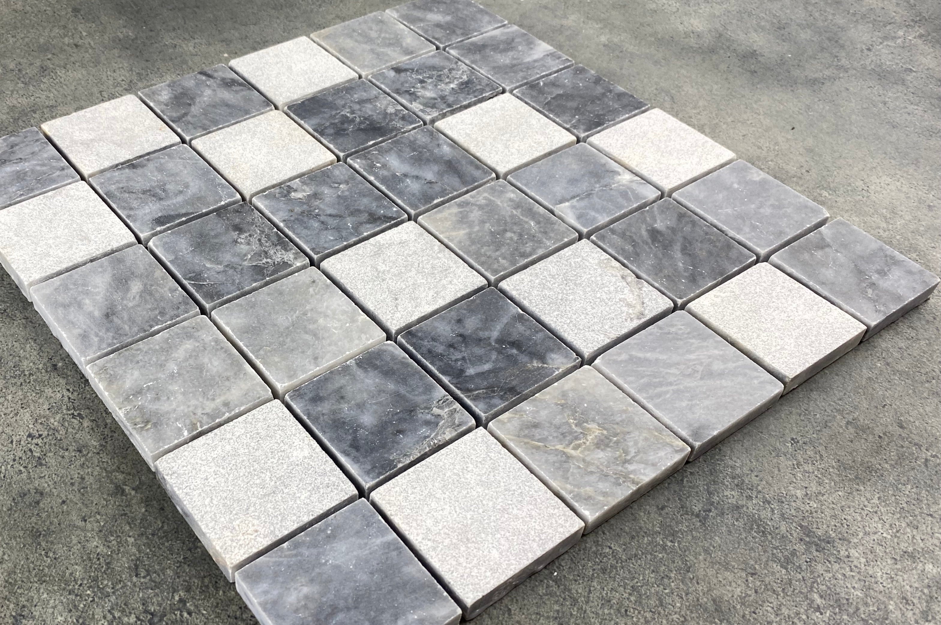 Luna Sky Marble 2"x2" Mixed Finish on 12" x 12" Mesh Mosaic Tile