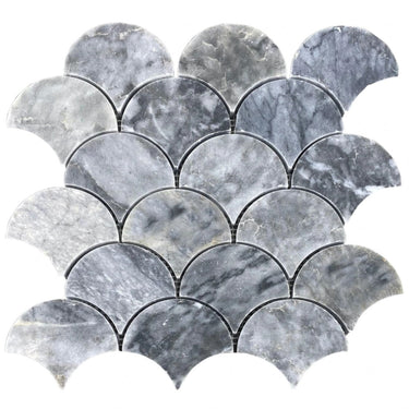 Luna Sky Marble Laguna Marble Mosaics have a soft combination of grey and white color. This mosaic tile has a marble base and a honed surface finish.