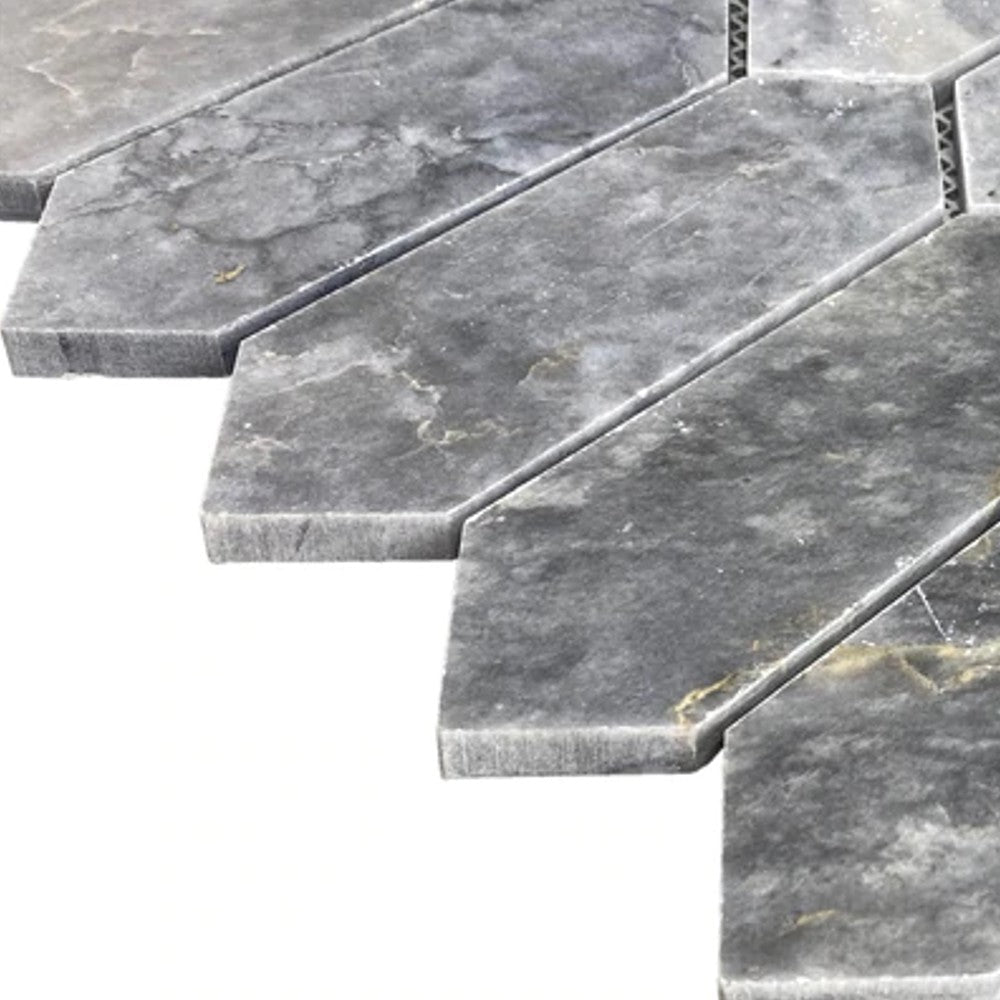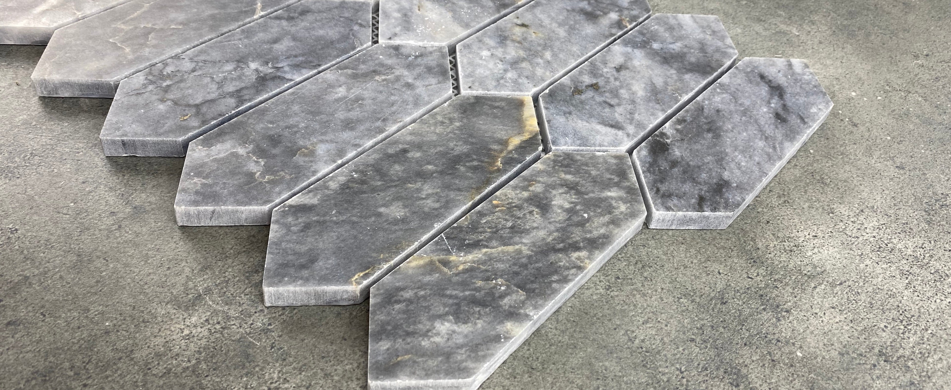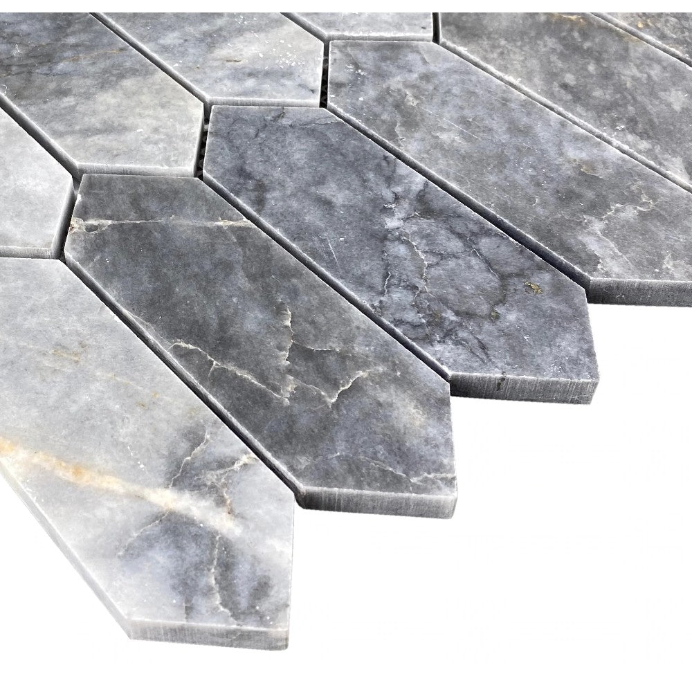 Luna Sky Marble Strada Marble Mosaics have a soft combination of grey and white color. This mosaic tile has a marble base and a honed surface finish.