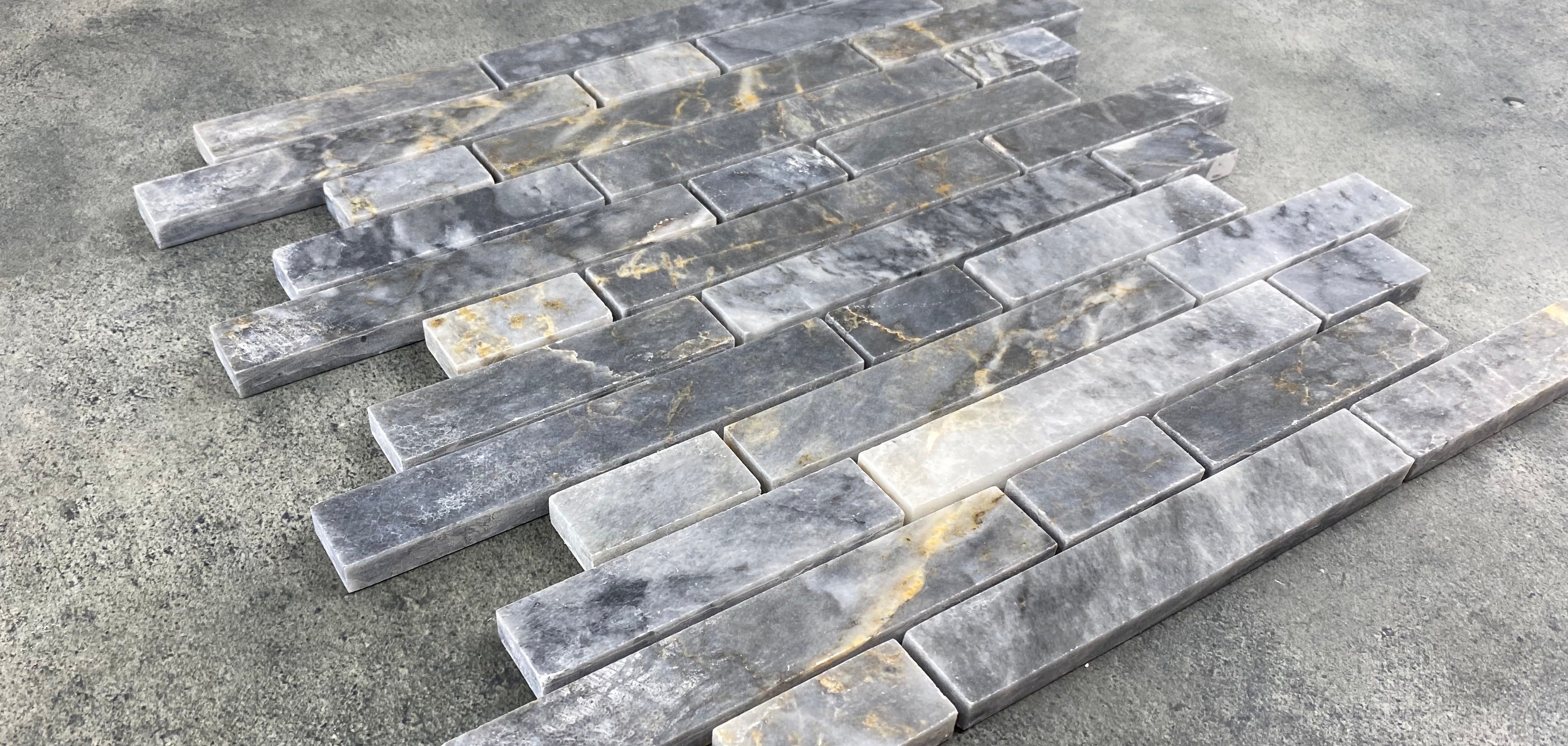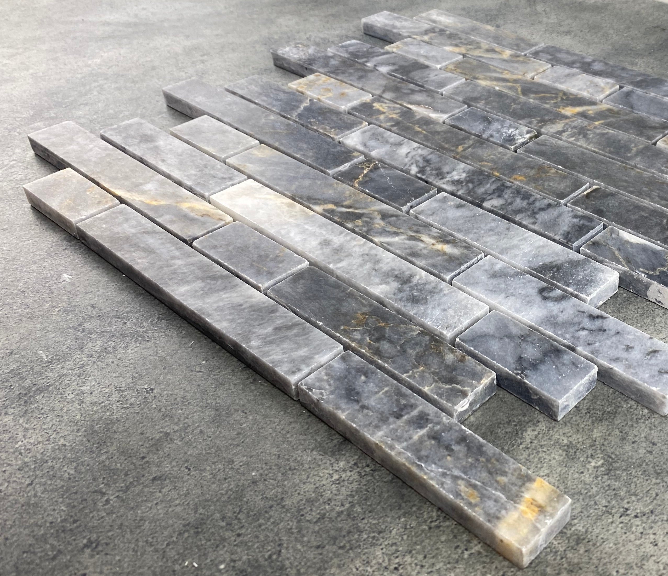 Luna Sky Marble Strip Liner on 12" x 12" Mesh Mosaic Tile