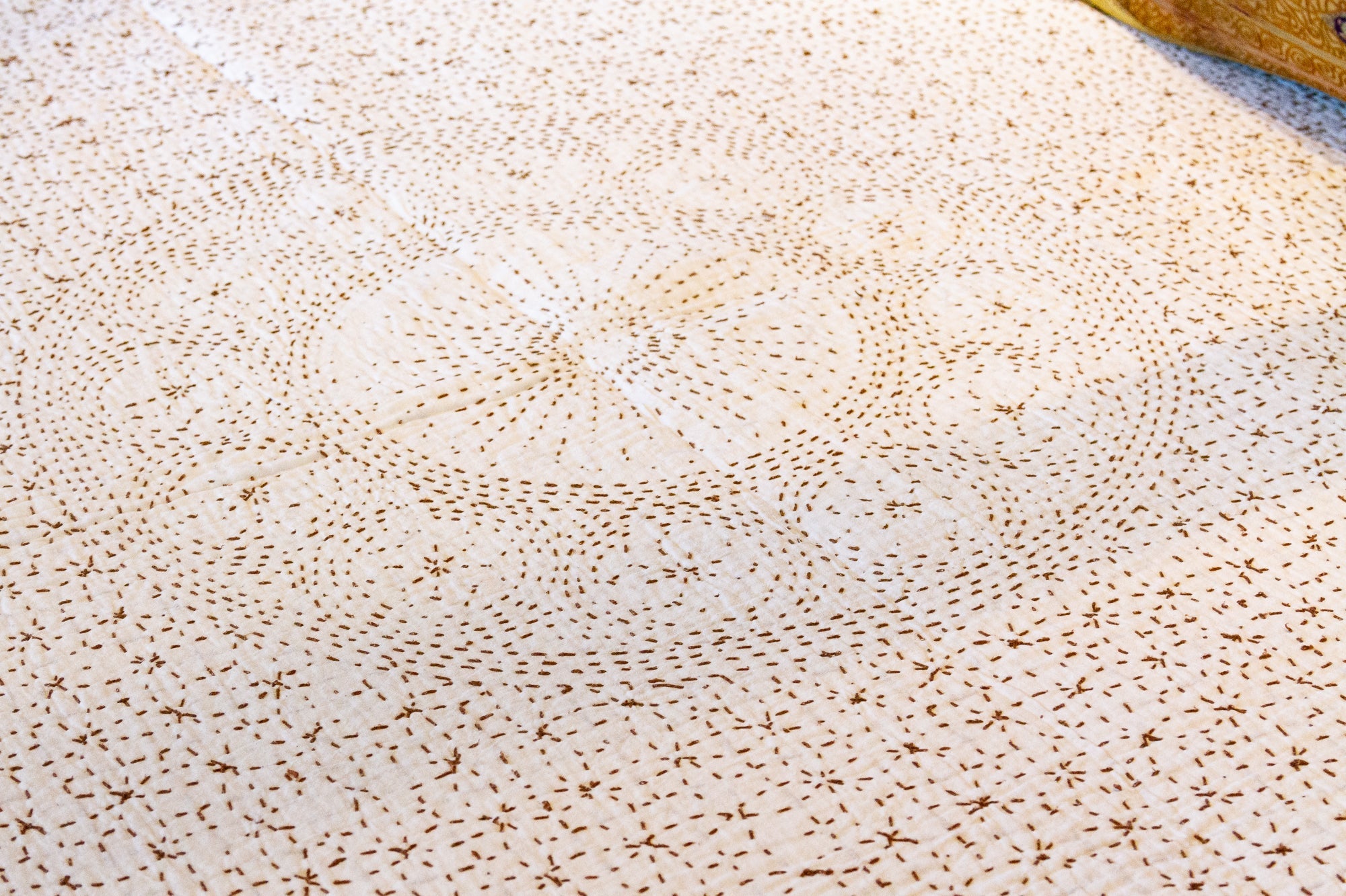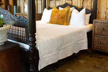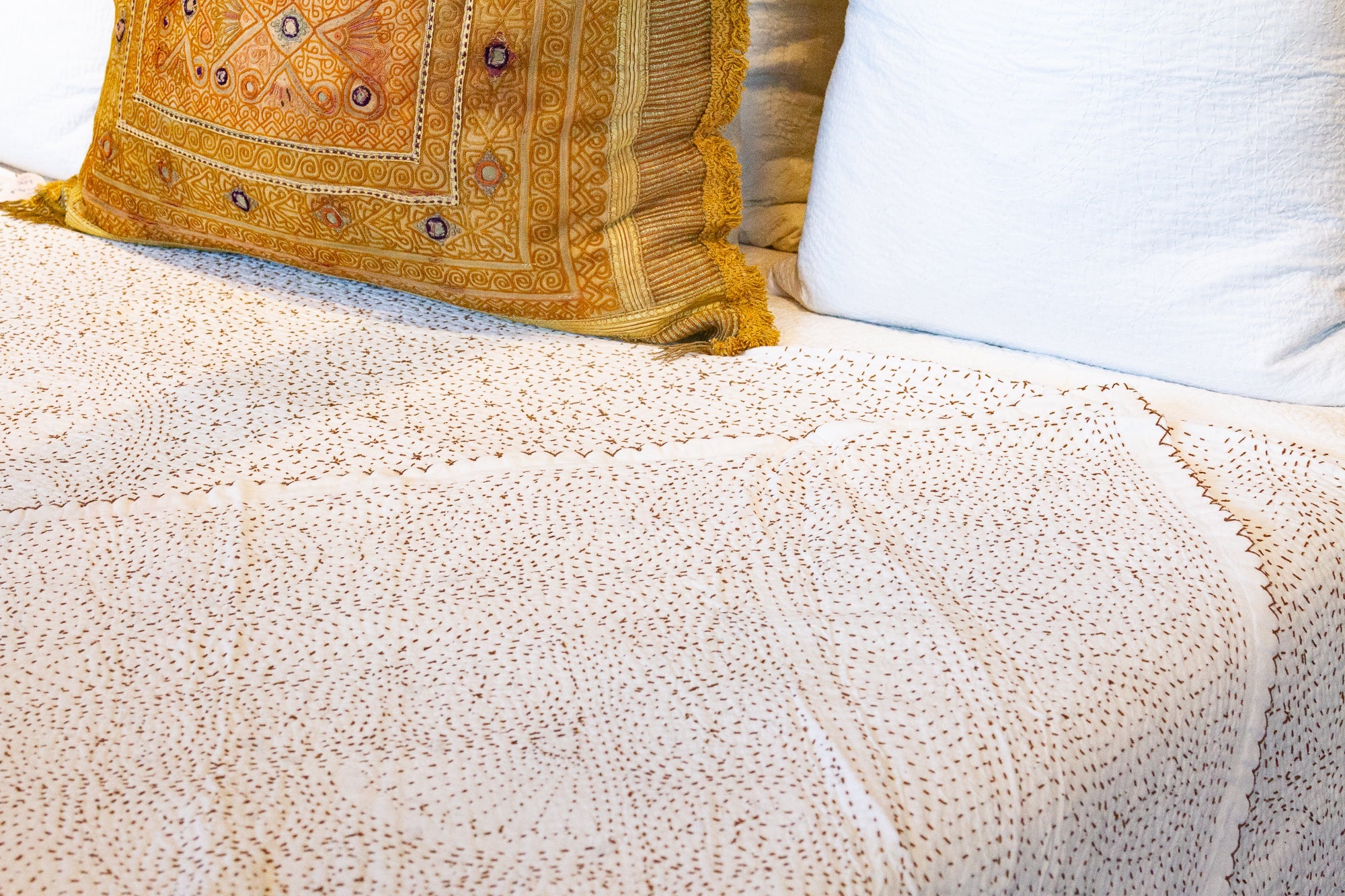 Celebrate the feminine with the handmade Filanan Gudari Bed Cover. This ornate textile is cotton based and adorned with the Meghval tribe's thread work. The embroidered medallions in this incredibly soft piece of art represent the circle of life.