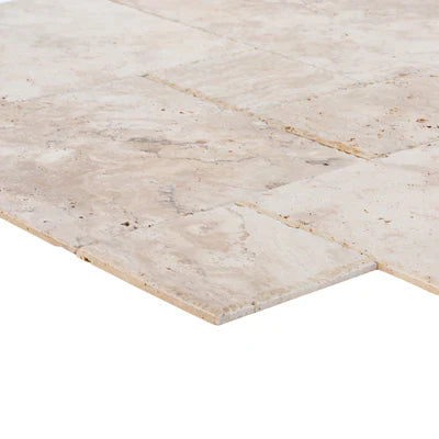 Ideal for indoor or outdoor applications, these natural travertine tiles are durable and have various shades of beige that create a subtle visual interest. Each box has a combination of rectangular and square tiles that combine to create a French pattern. With a Brushed and Chiseled finish, the tile provides a rustic aged look that blends with the surroundings to create a perfect setting.