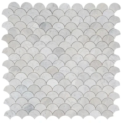 Palia White Dolomite Mosaic Tile Laguna Pattern on 12" x 12" Mesh - Polished