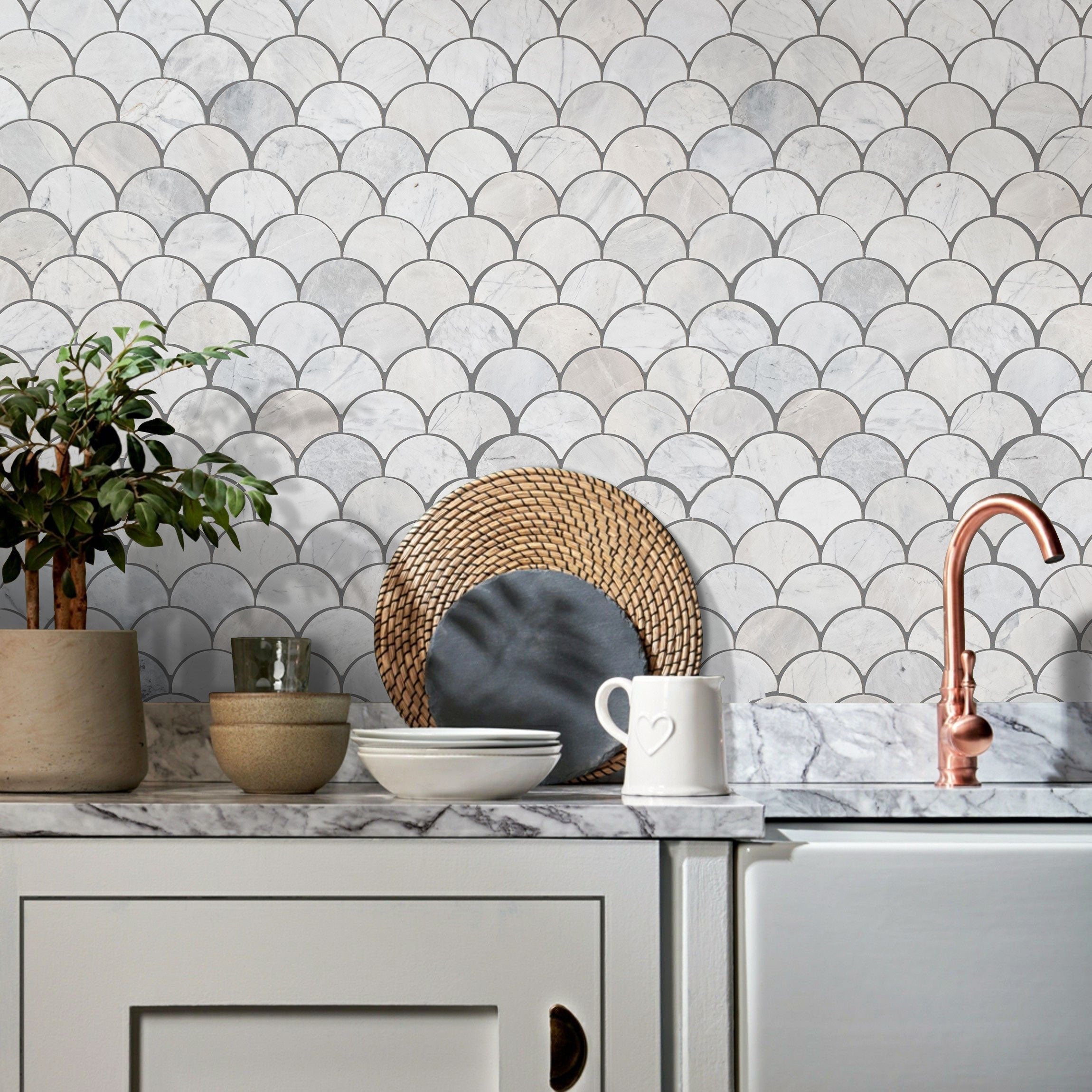 Home Palia White Dolomite Mosaic Tile Laguna Pattern on 12" x 12" Mesh - Polished