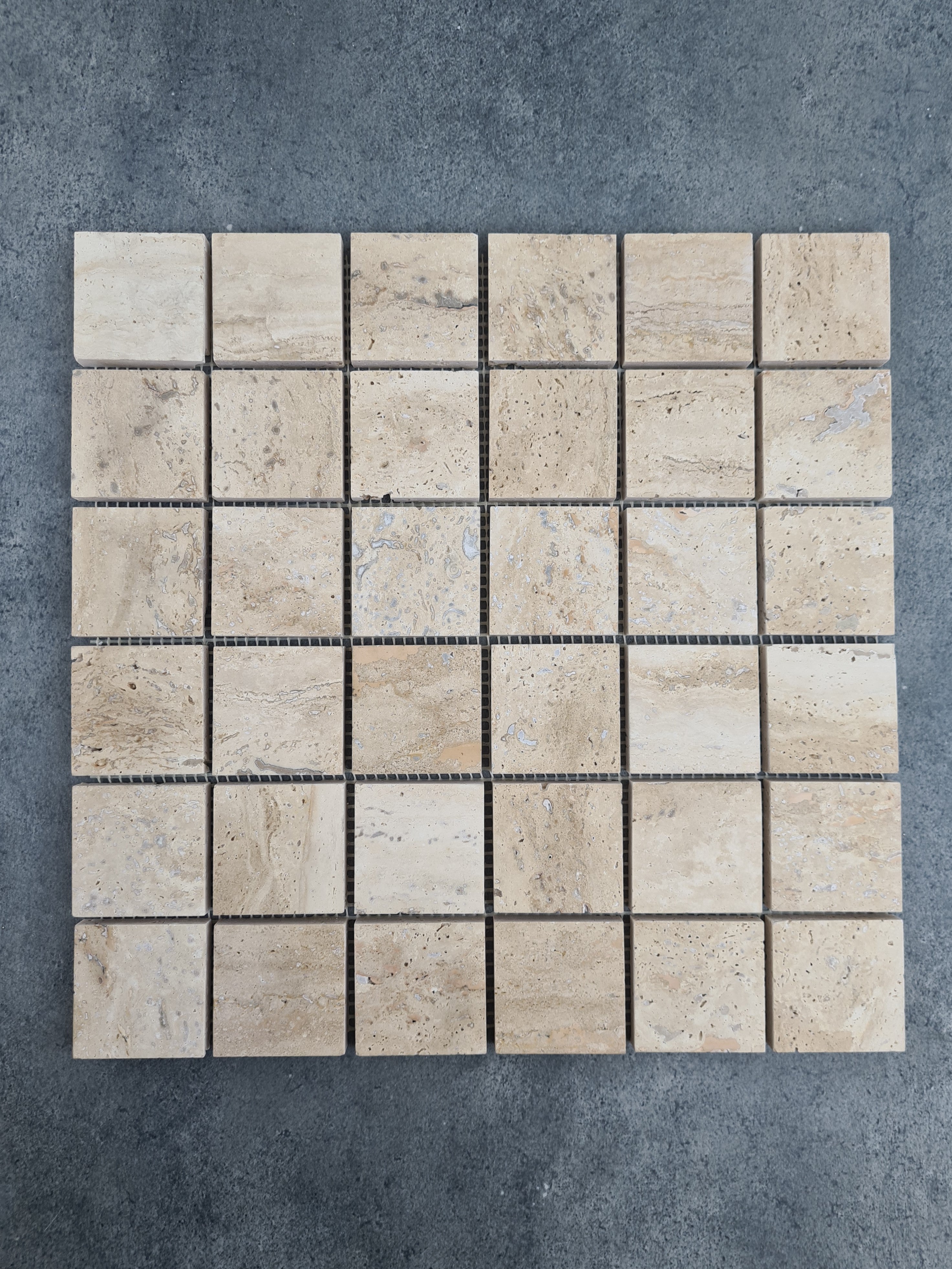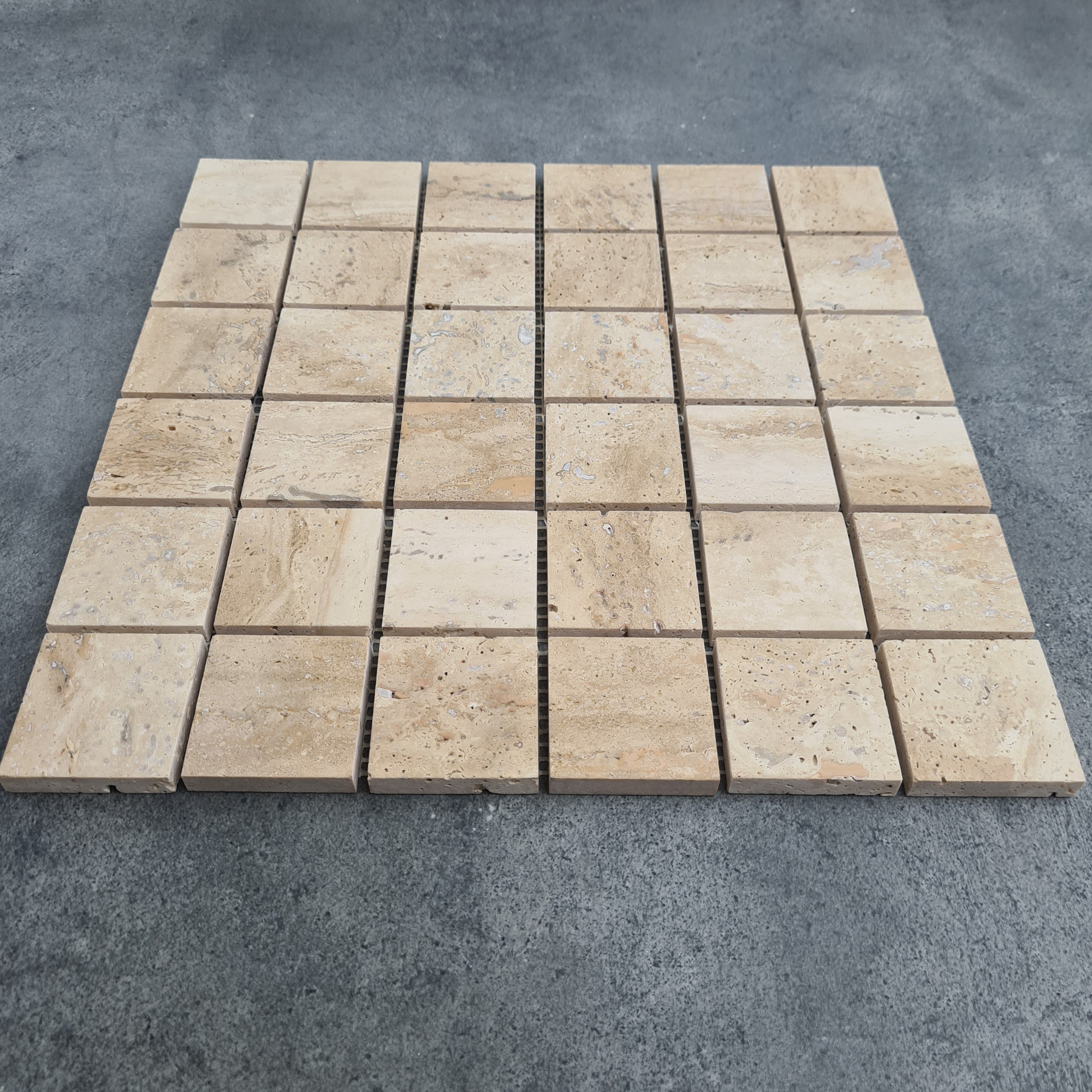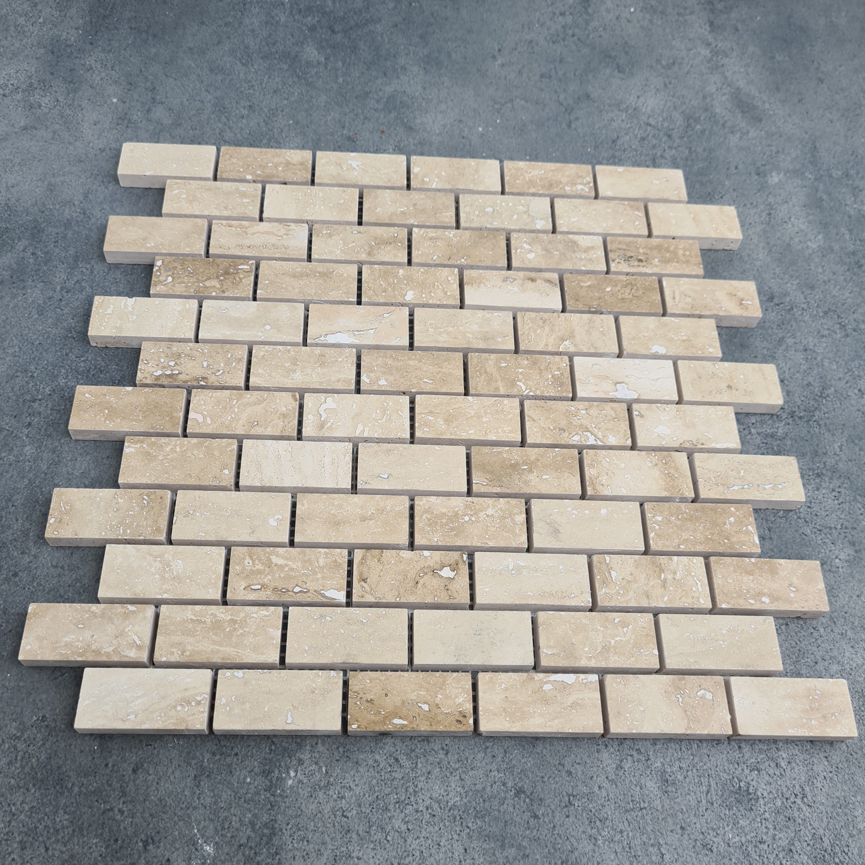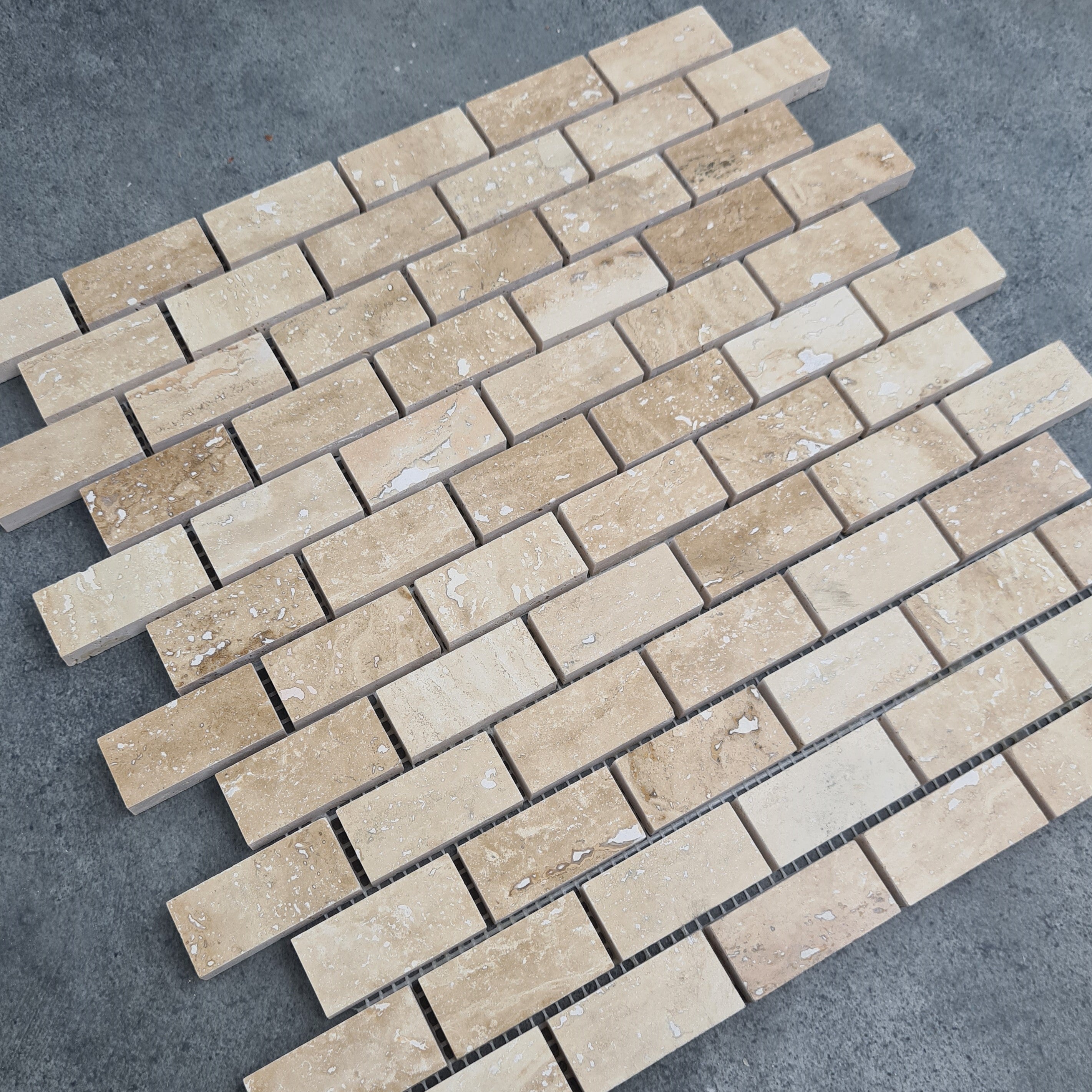 This travertine veneer is the perfect choice for any construction project. It will add a sophisticated appearance to accent walls, furniture, backsplashes, DIY decor, etc. All mosaic stones are fixed with a 12"x12" mesh to provide a continuous appearance.